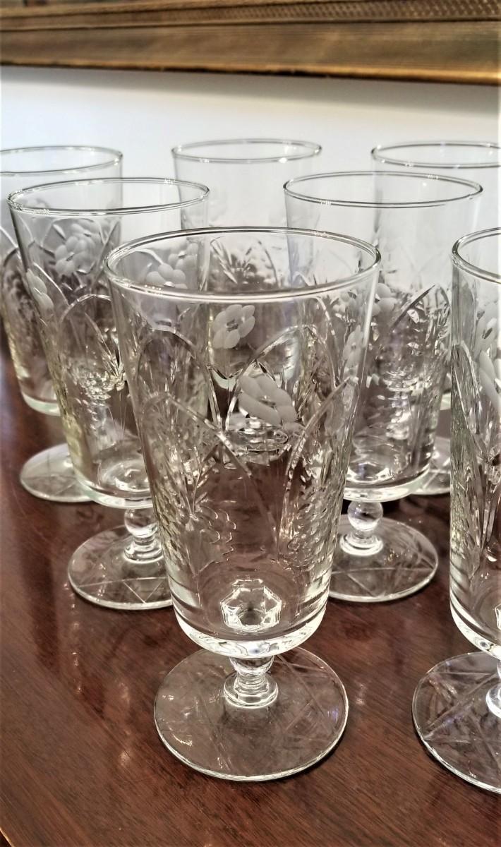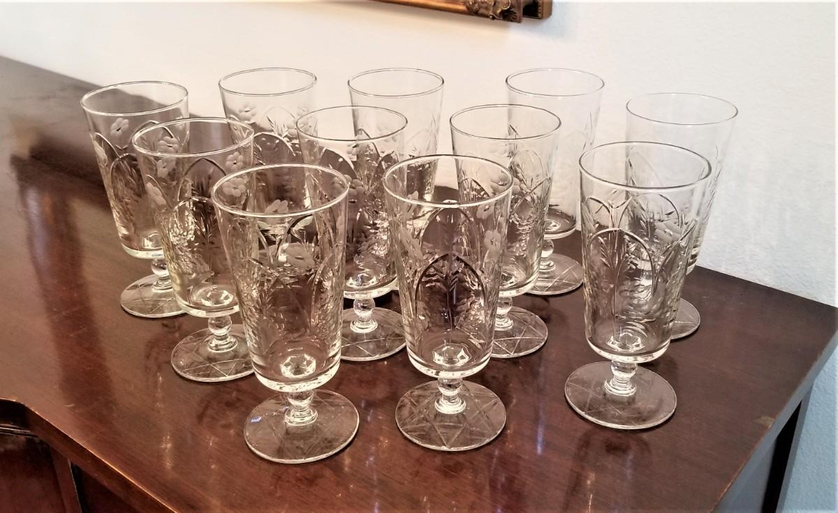 Nice set of 11 vintage crystal footed water or Iced tea glasses - good condition, each is 6.75" tall.