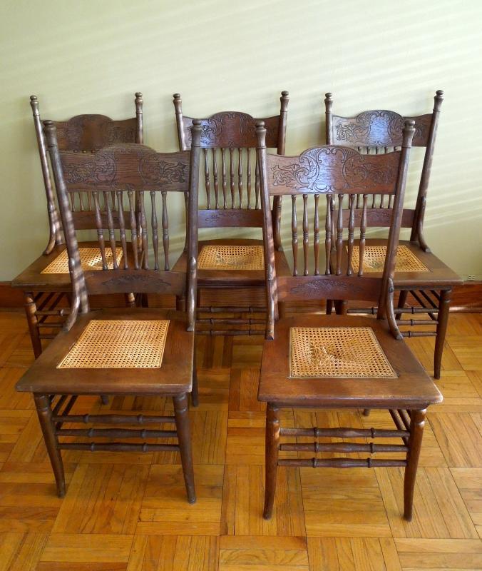 Lot 63 Set of 5 Vintage Pressed Wood Caned Seat Chairs