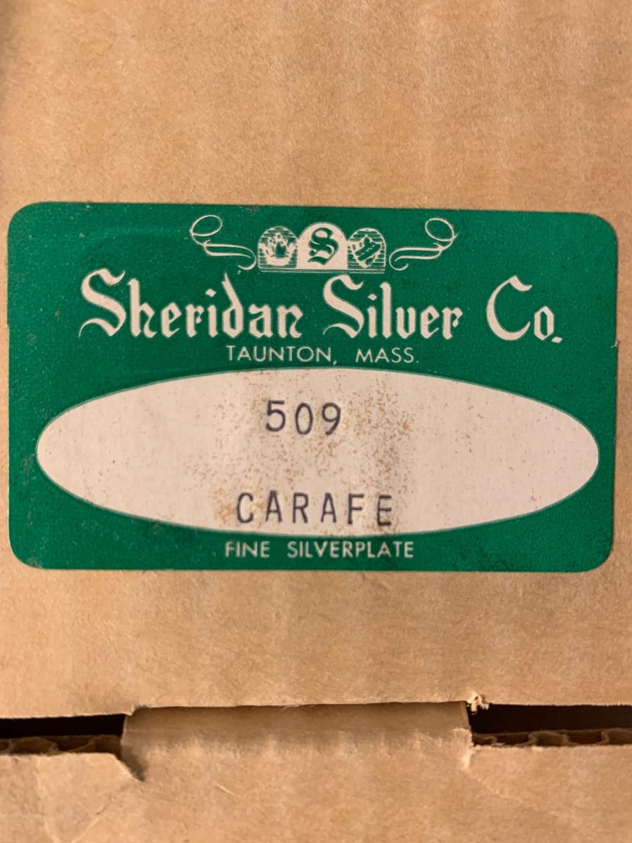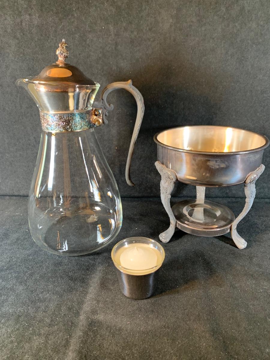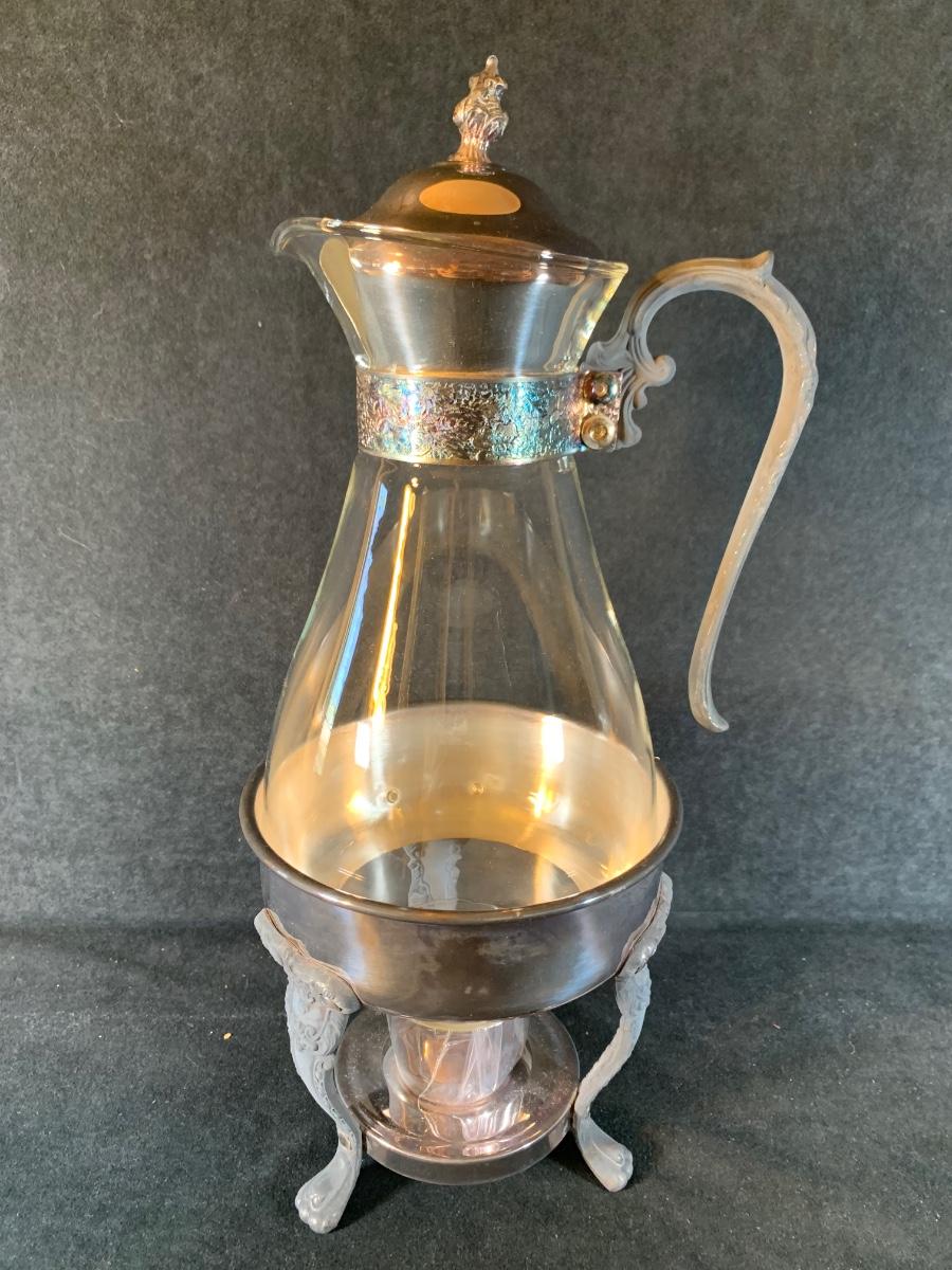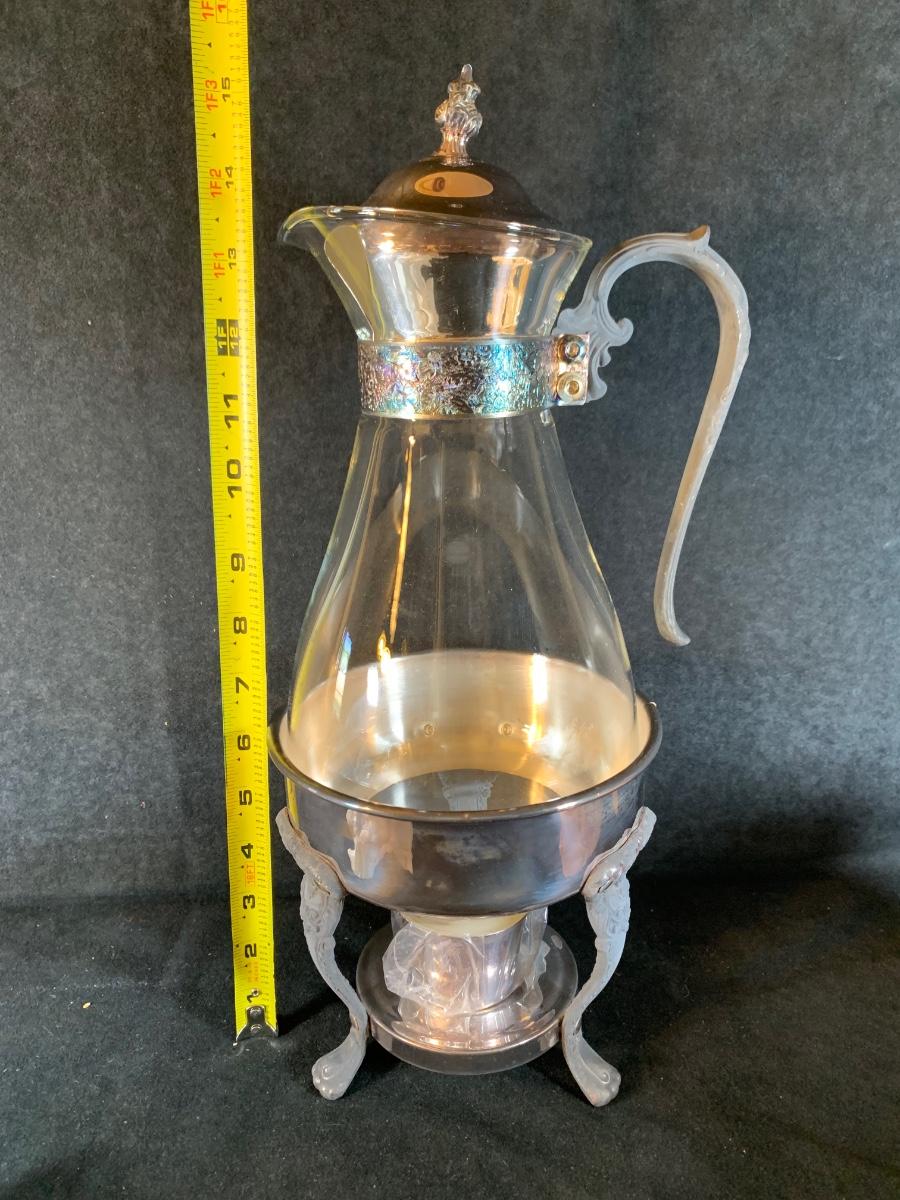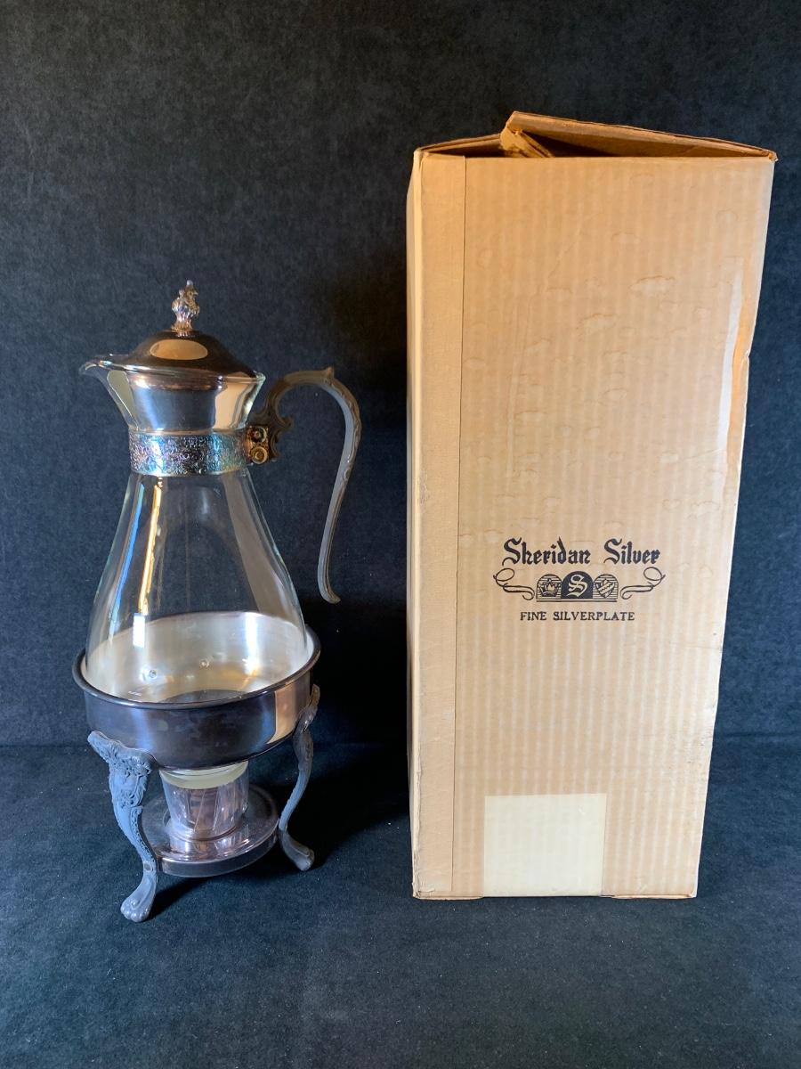 Lot 63. Sheridan Silver Co Silverplate & Glass Carafe & Warmer