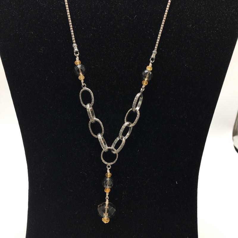 Silpada lot includes Citrine and sterling silver nugget necklace with a detailed toggle clasp and measures 18.5” long. You'll also find a smoky quartz, Citrine and engraved sterling silver necklace with a lobster clasp that measures 17” long. The third piece in this lot is a Silver Rush Bracelet of lightweight sterling silver.