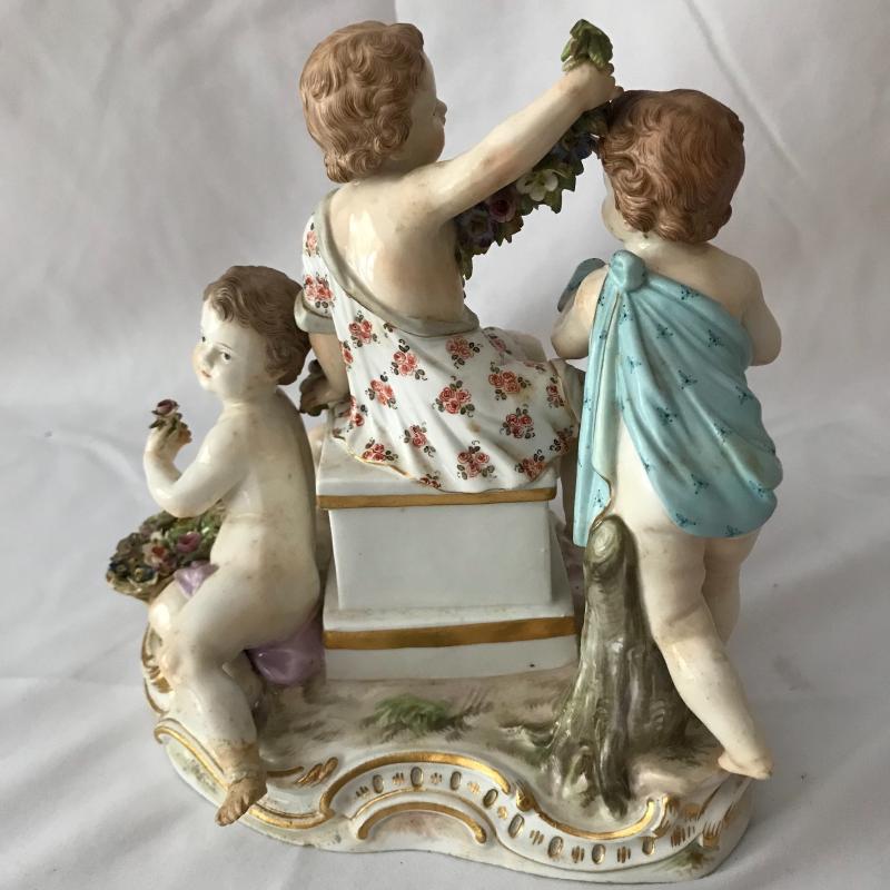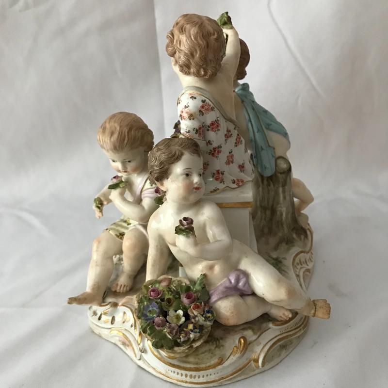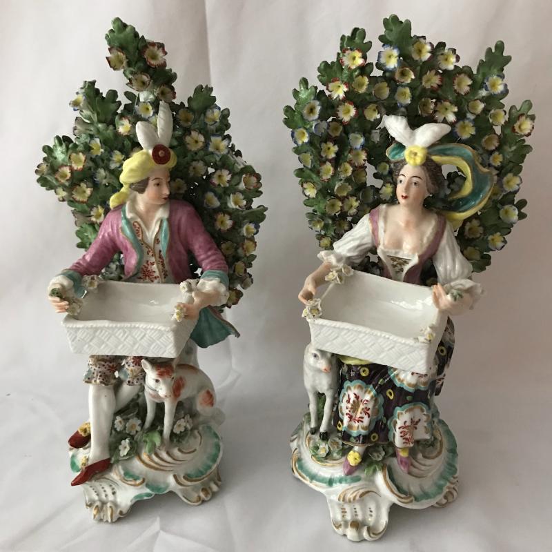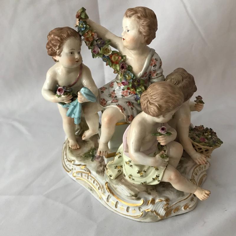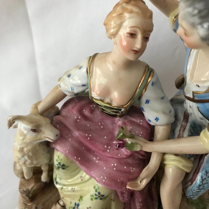 Six large figurines or small statues. The tallest two are matching and approx. 10” tall. Markings on back of these two resemble an anchor. Angel figurine with wings is a candy dish. Markings read “UCAGCO China Made in occupied Japan”. Statues of man with woman and four kids have similar markings. See pics. Shipping available or local pickup in Asheville, NC.