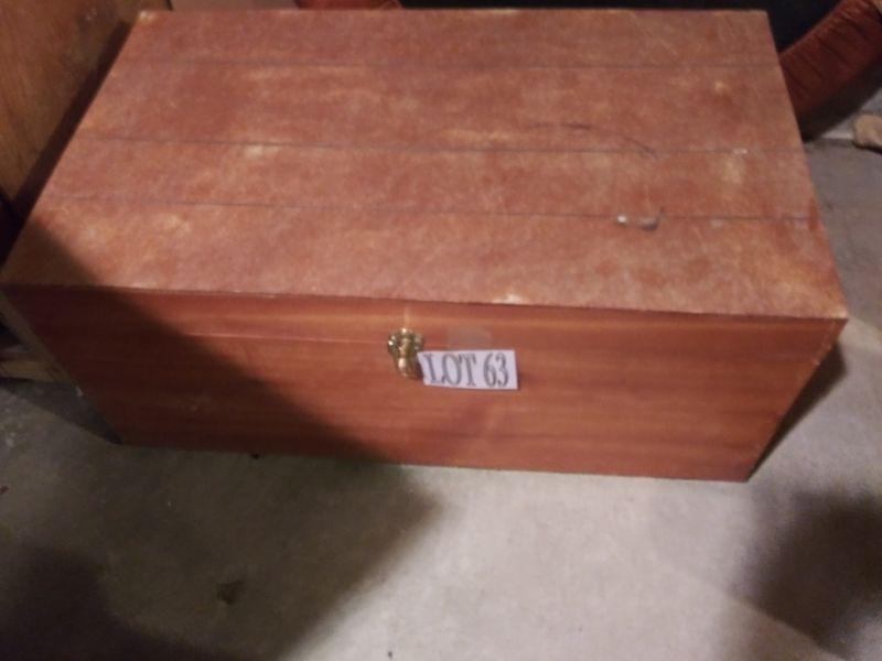 WOODEN TRUNK/CHEST AND FOLDING CHAIR W/DESK
