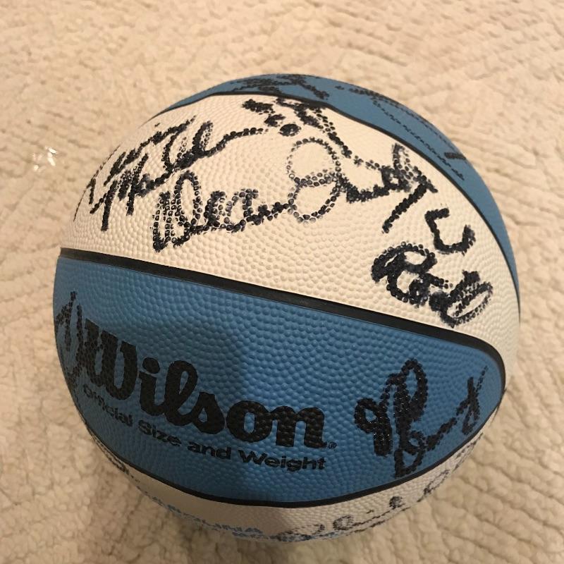 Wilson “Dean Smith” Carolina blue and white UNC basketball from presumably the 1989-1990 season based on players’ names. Signatures appear to include names like Dean Smith, Bill Guthridge, Jeff Denny, Scott Williams, Randy Wiel, Rick Fox, Pete Chilcutt, Matt Wenstrom and more! See photos. No COA. Shipping available.