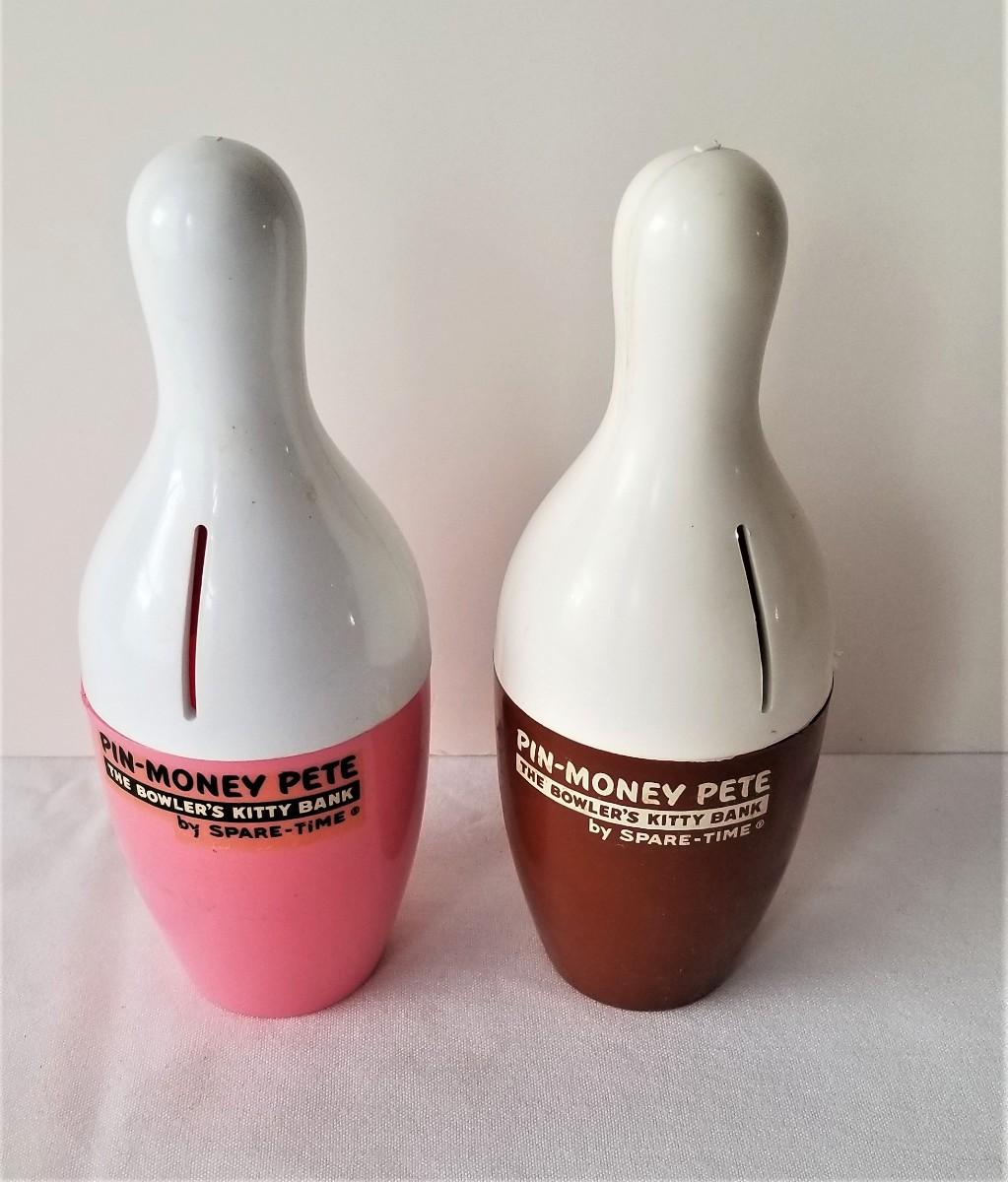 Pair of vintage Money Pete Bowling Banks - plastic, each 6.5" tall.