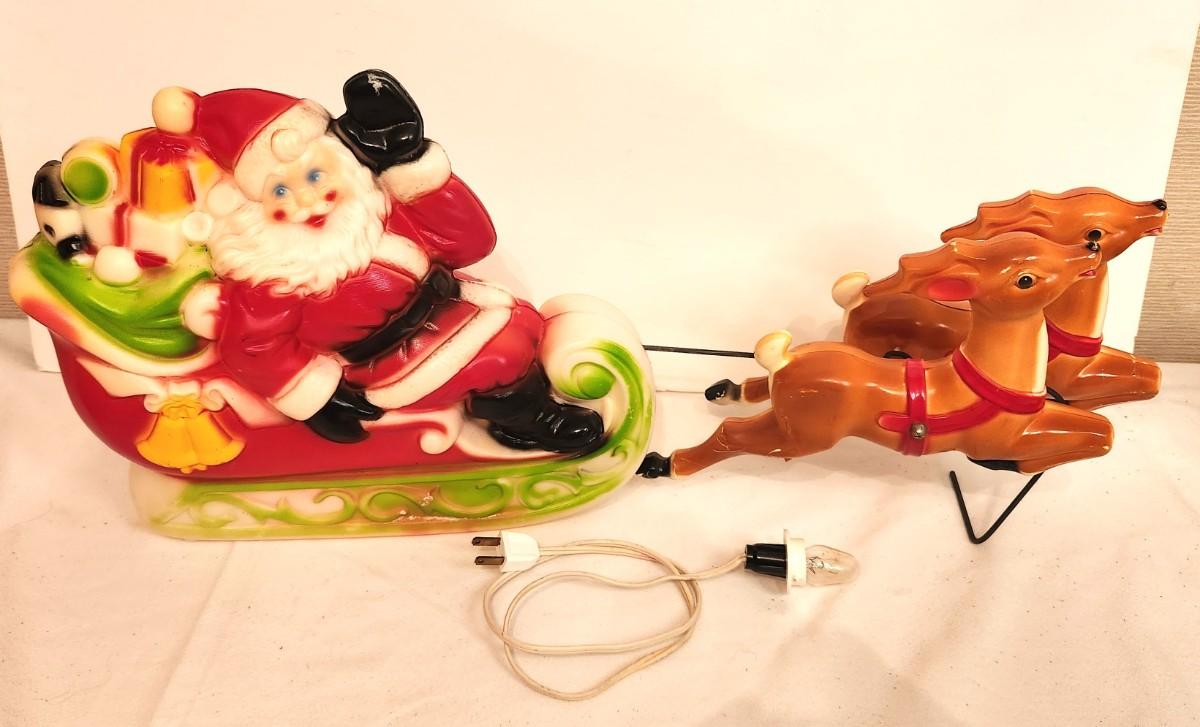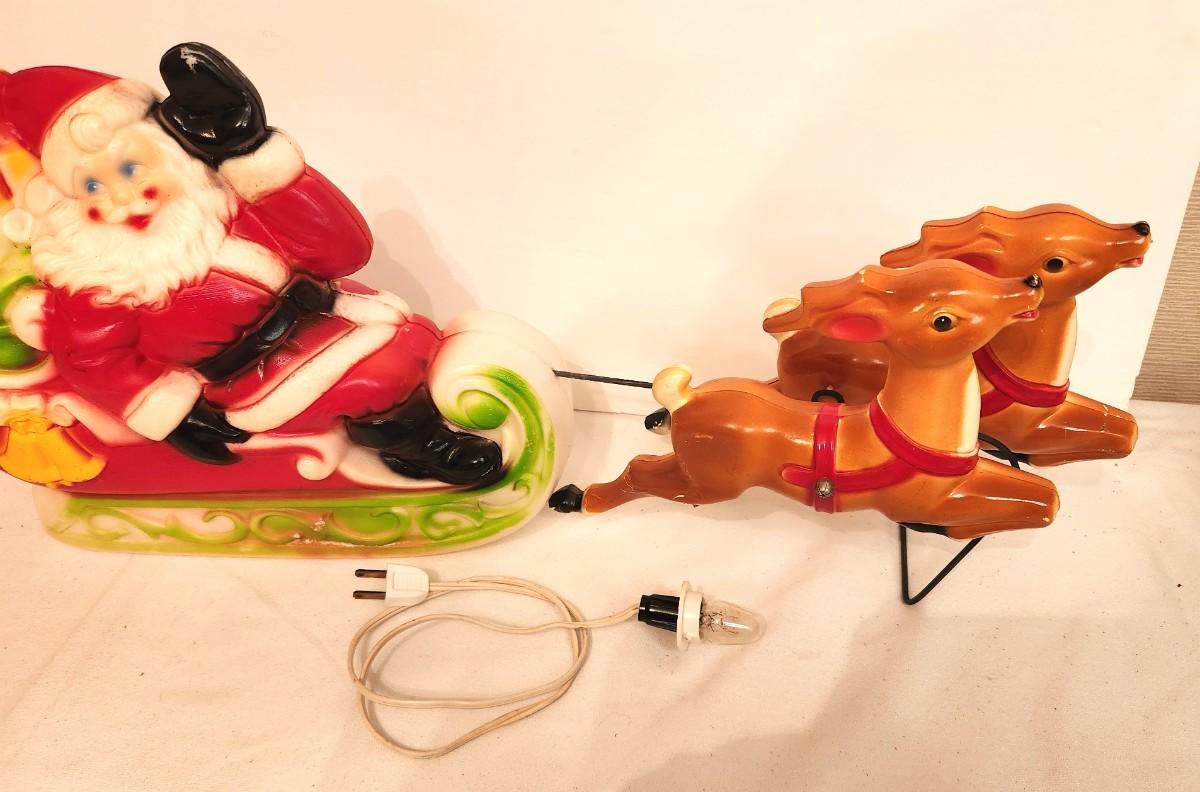 Lot #63 Vintage Santa & Reindeer Blow Mold - Complete! Great condition!