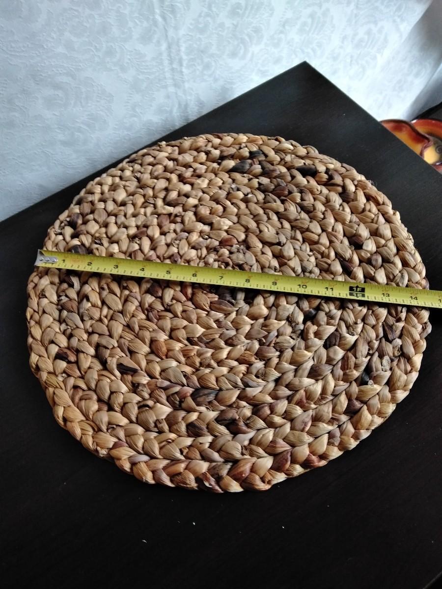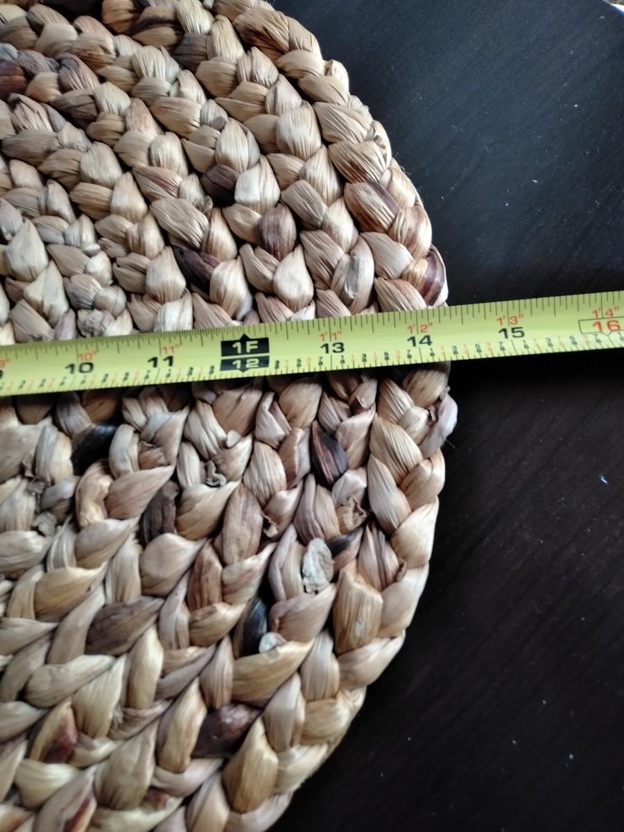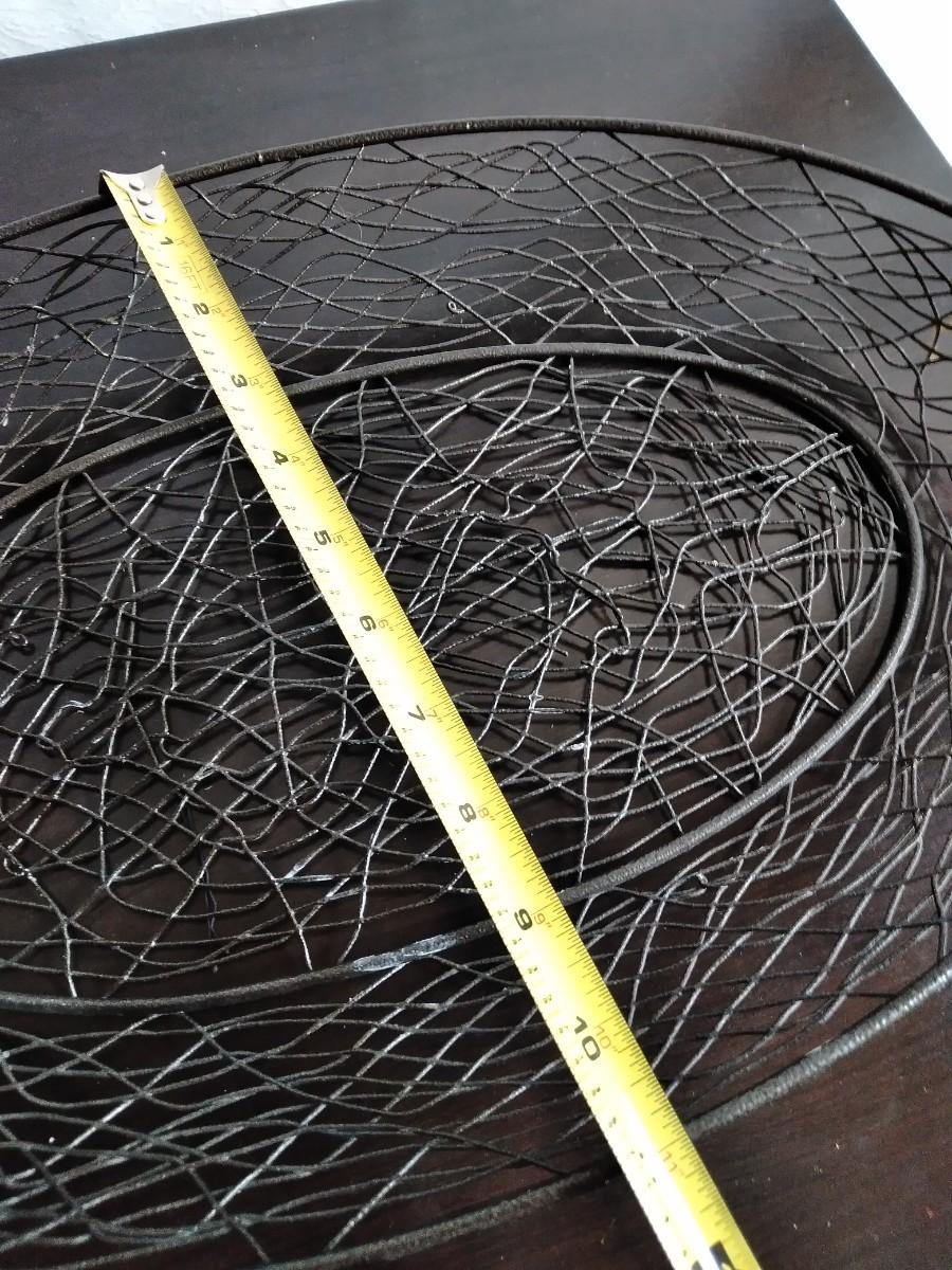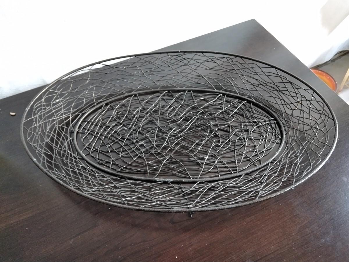 WALL DECORATION, 5 BATTERY OPERATED CANDLES IN WIRE BASKET, WITH A WICKER CIRCULAR FURNITURE PROTECTING PAD.