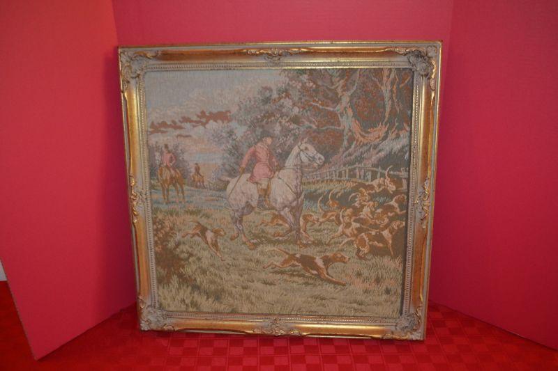 LOT 630 FRAMED TAPESTRY HUNTING SCENE