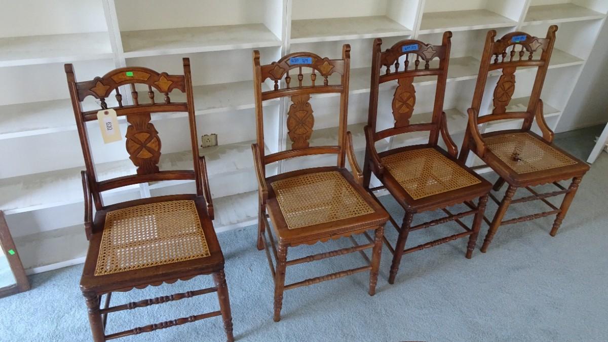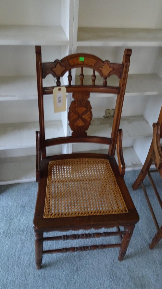 LOT 630 ONE CHAIR HAS DAMAGE TO SEAT