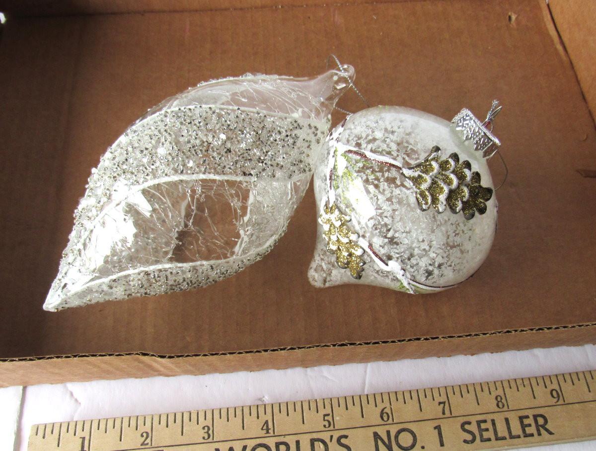 Lot 630:  Two Large Clear and White Christmas Ornaments