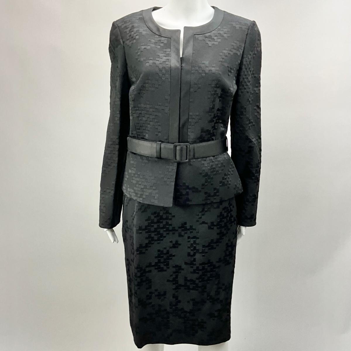 Tahari Black Ribbon Woven Suit Set ( Jacket, Skirt, & Belt )