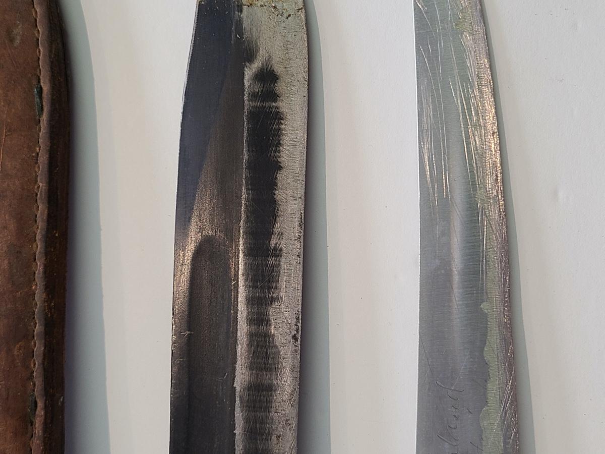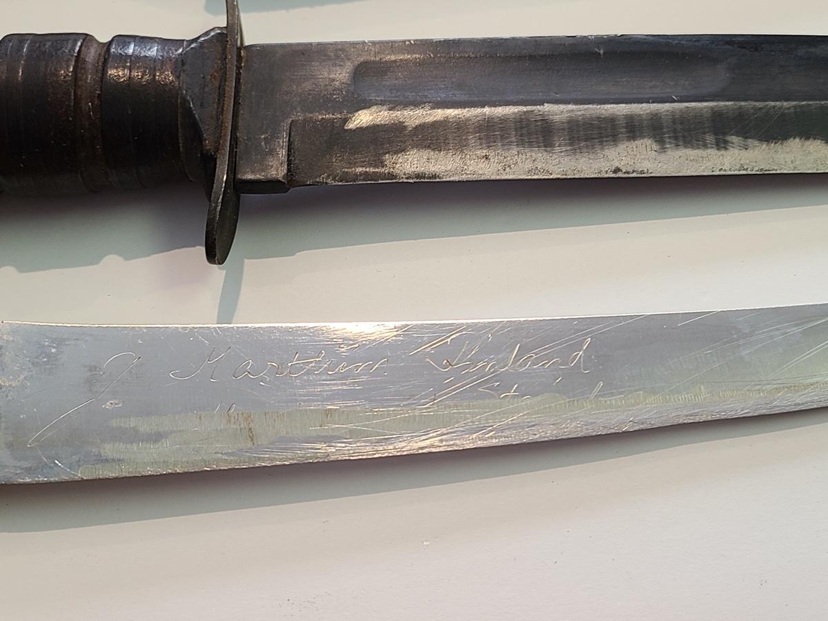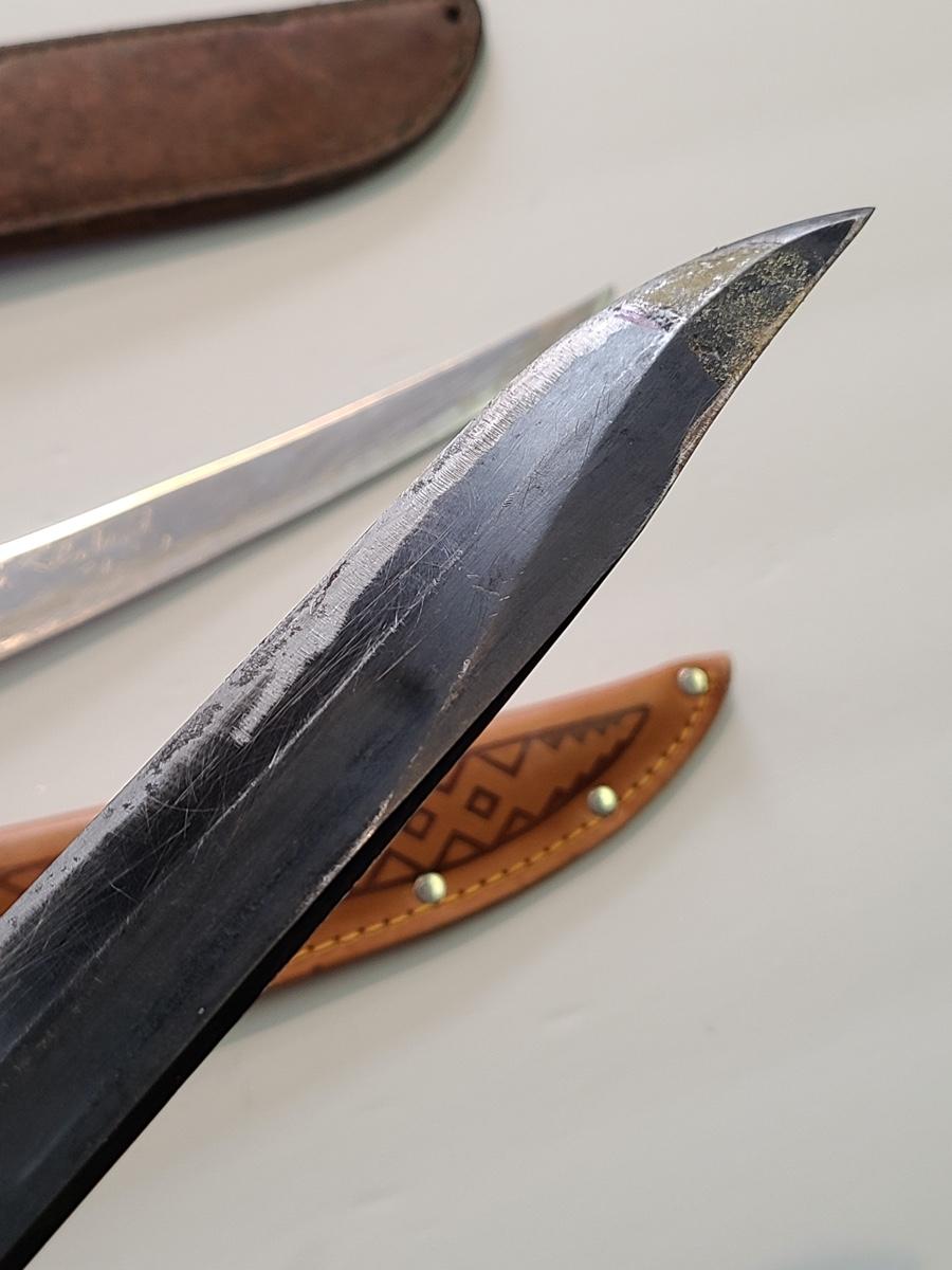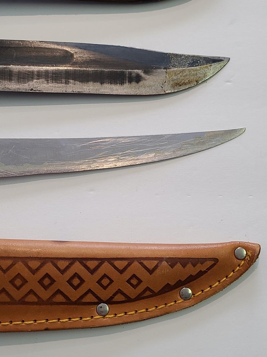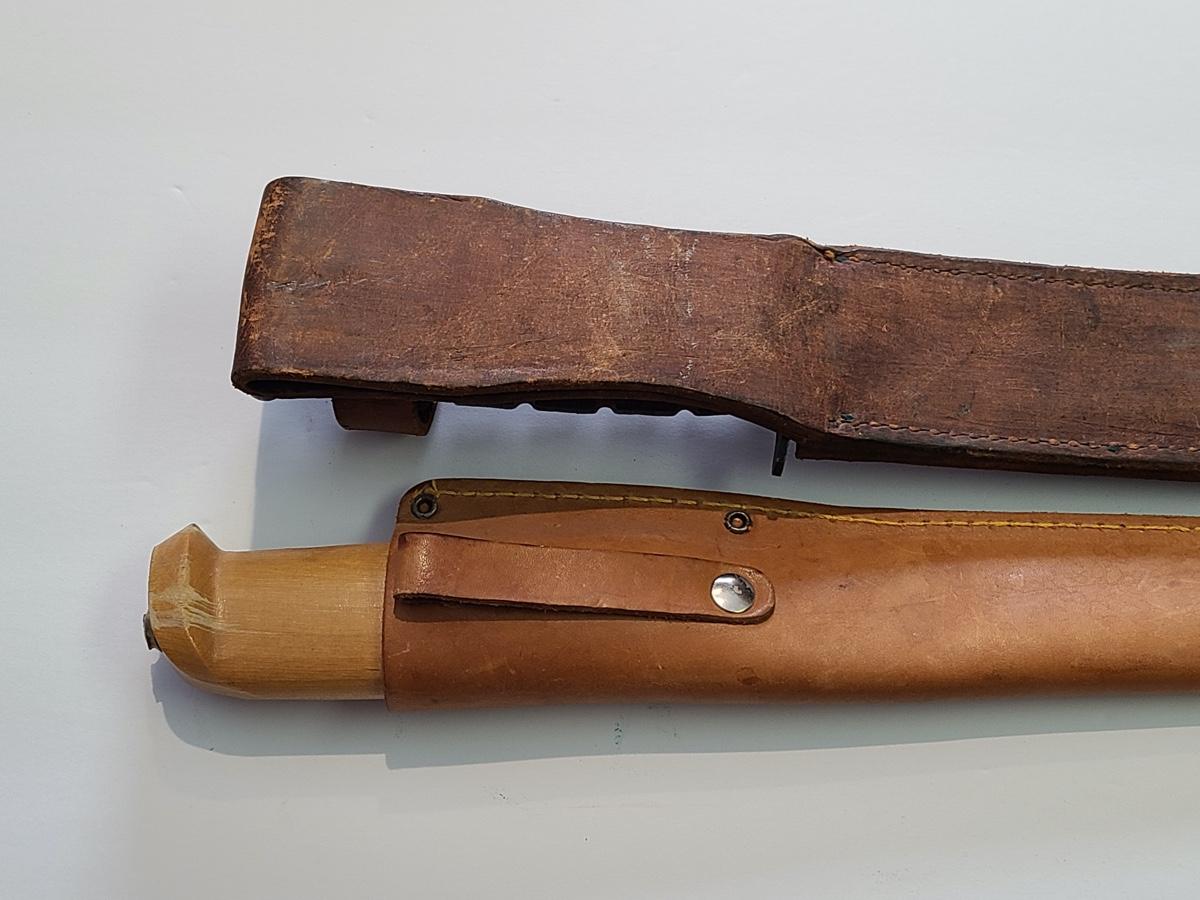 Two vintage knives. Each show conditions issues. The hunting knife is very sharp, so we did not try to clean the blade. Please see all pictures as they are the best representation of the items. The pictures show condition, measurements if taken, and what is included in the lot. Due to the large amount that we photograph and the time frame, we are not always able to take measurements. All items unless noted, are pre-owned and have been used. If you purchased furniture, you must bring help. We do not allow one person to carry large furniture out on their own. Bring help, tools and a truck for the safety of our client’s homes, and your personal safety. Company policy. Thank you.