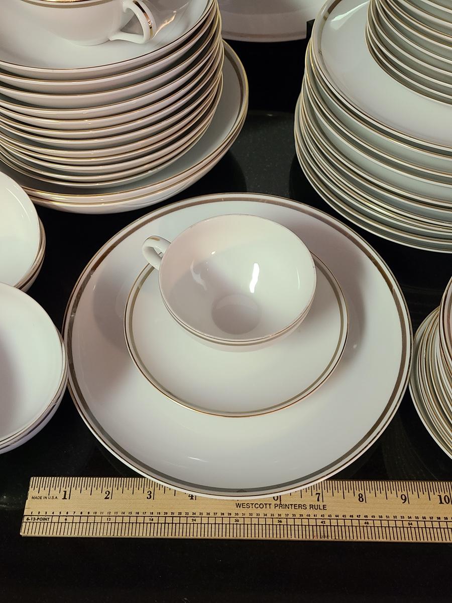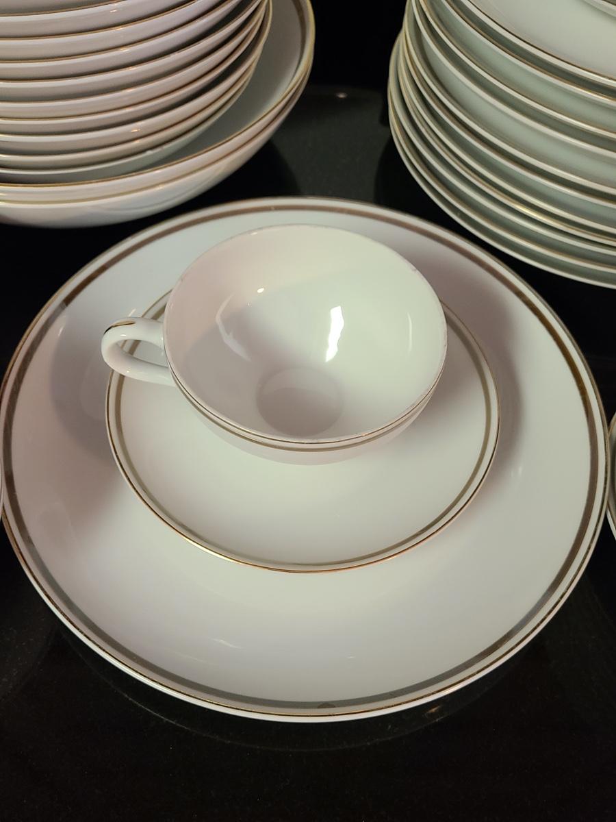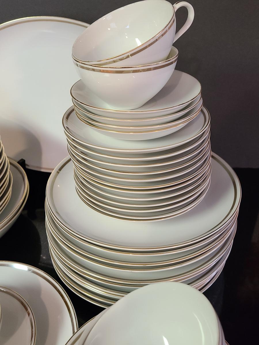 Lovely vintage dishes, enough for an 8 person setting. Please see all pictures as they are the best representation of the items. The pictures show condition, measurements if taken, and what is included in the lot. Due to the large amount that we photograph and the time frame, we are not always able to take measurements. All items unless noted, are pre-owned and have been used. If you purchased furniture, you must bring help. We do not allow one person to carry large furniture out on their own. Bring help, tools and a truck for the safety of our client’s homes, and your personal safety. Company policy. Thank you.