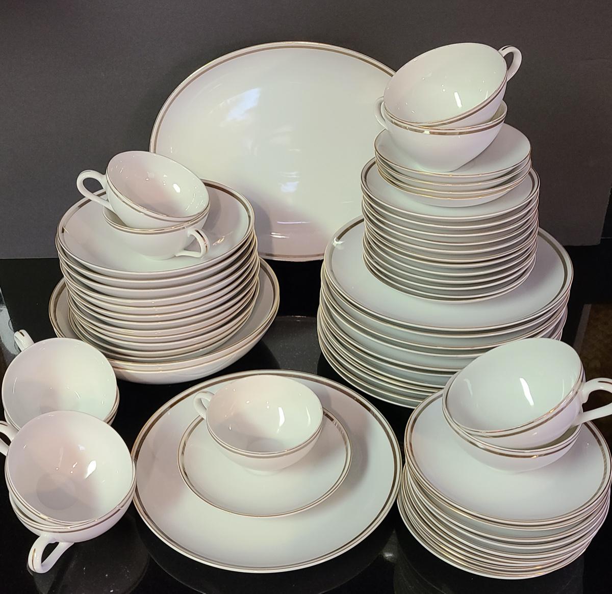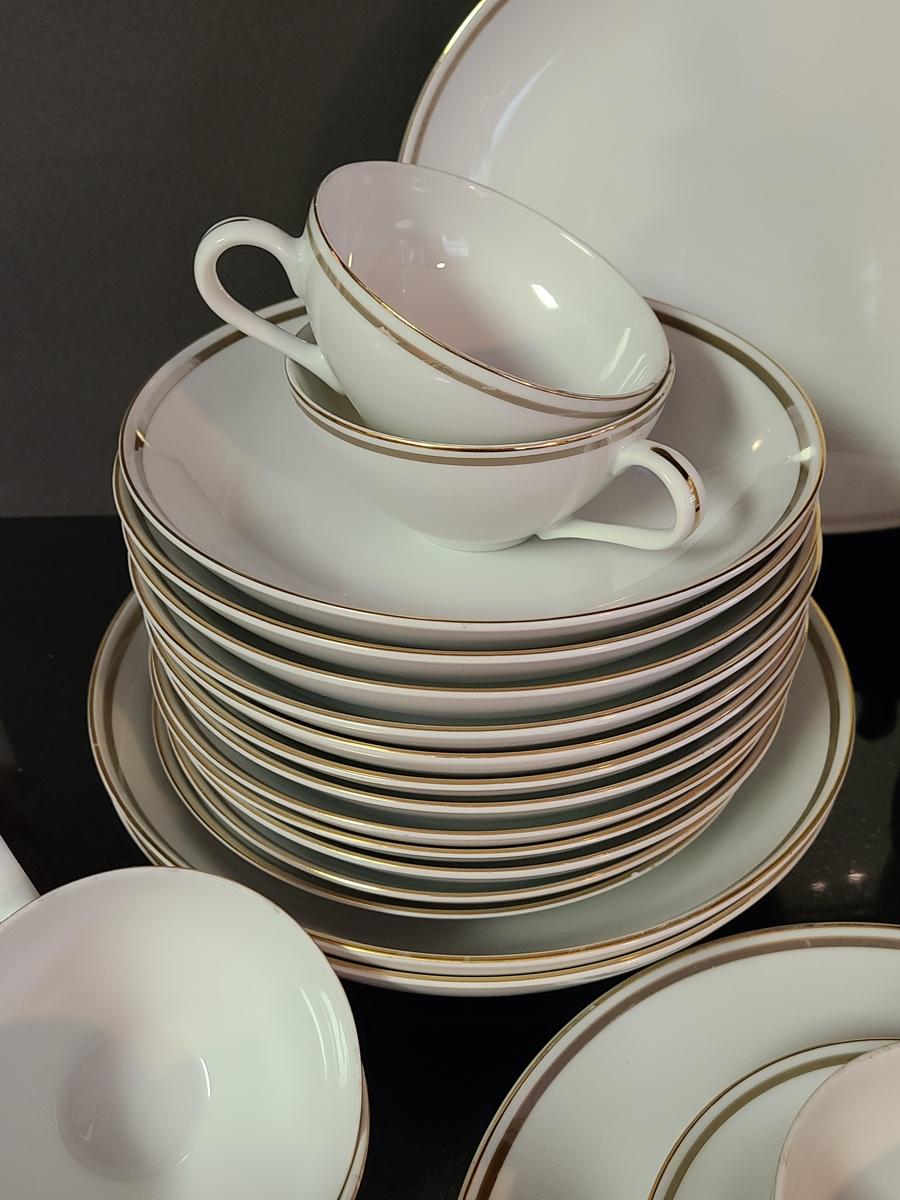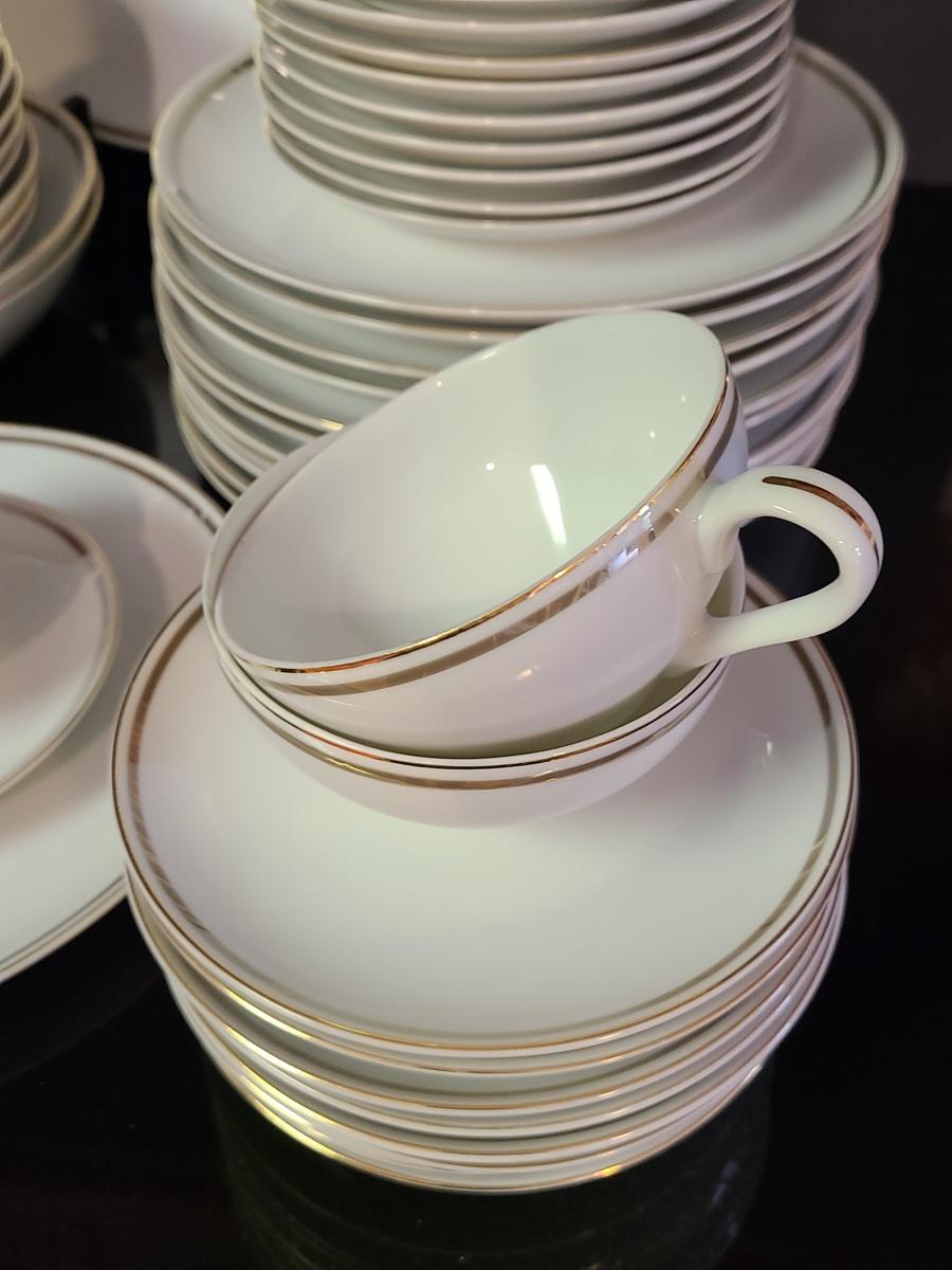 Lovely vintage dishes, enough for an 8 person setting. Please see all pictures as they are the best representation of the items. The pictures show condition, measurements if taken, and what is included in the lot. Due to the large amount that we photograph and the time frame, we are not always able to take measurements. All items unless noted, are pre-owned and have been used. If you purchased furniture, you must bring help. We do not allow one person to carry large furniture out on their own. Bring help, tools and a truck for the safety of our client’s homes, and your personal safety. Company policy. Thank you.
