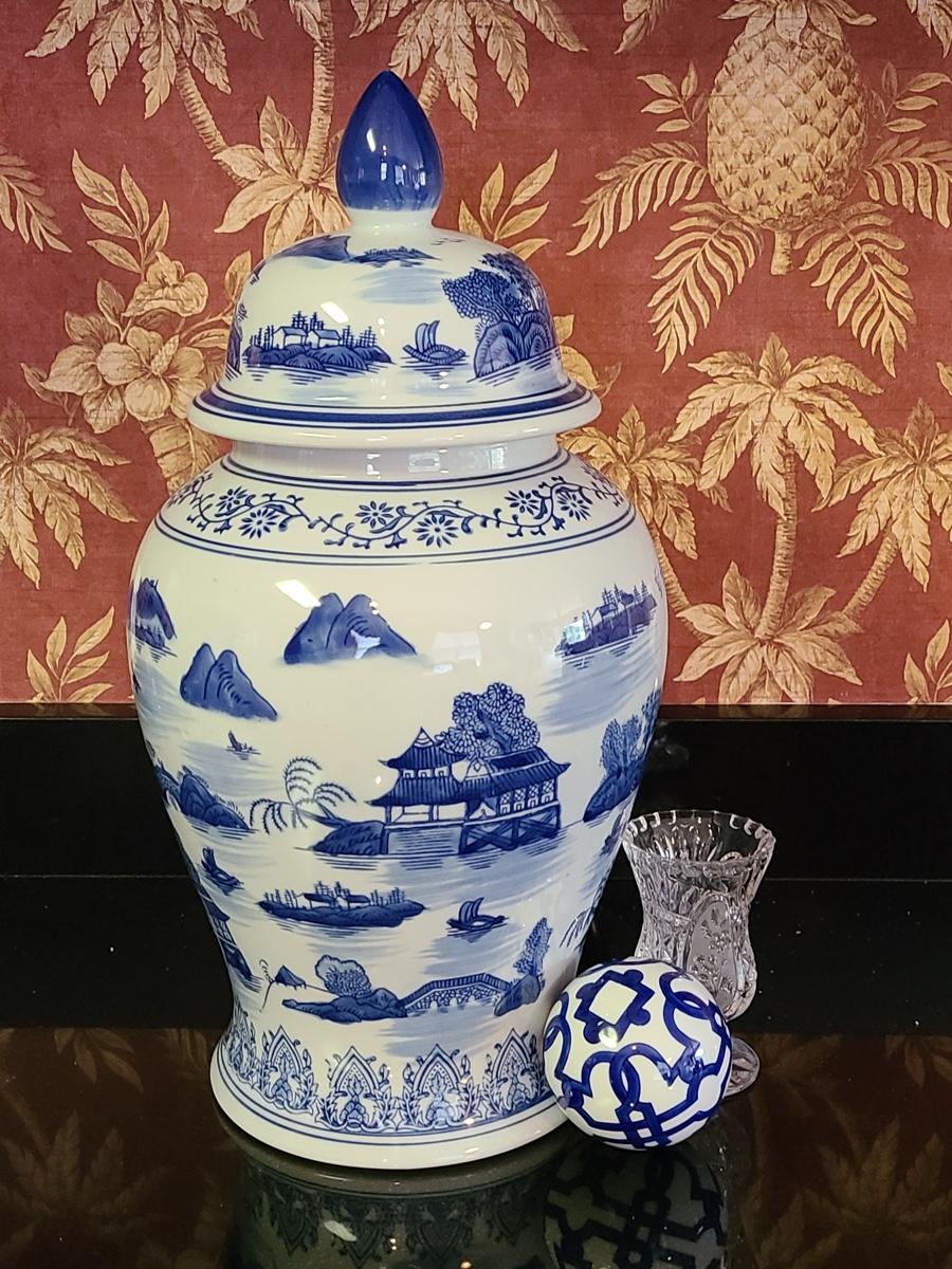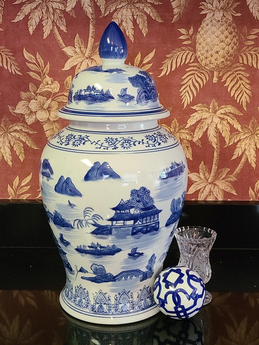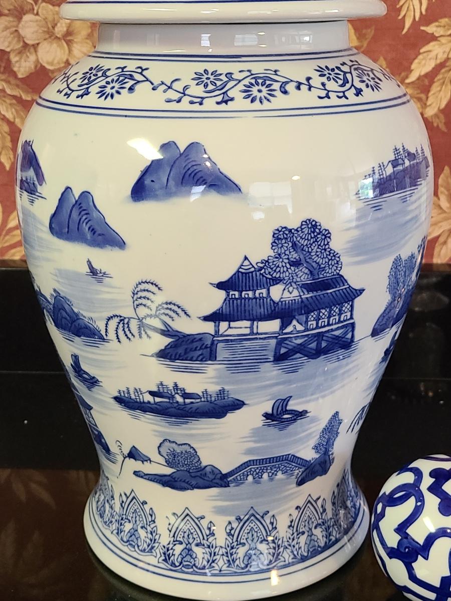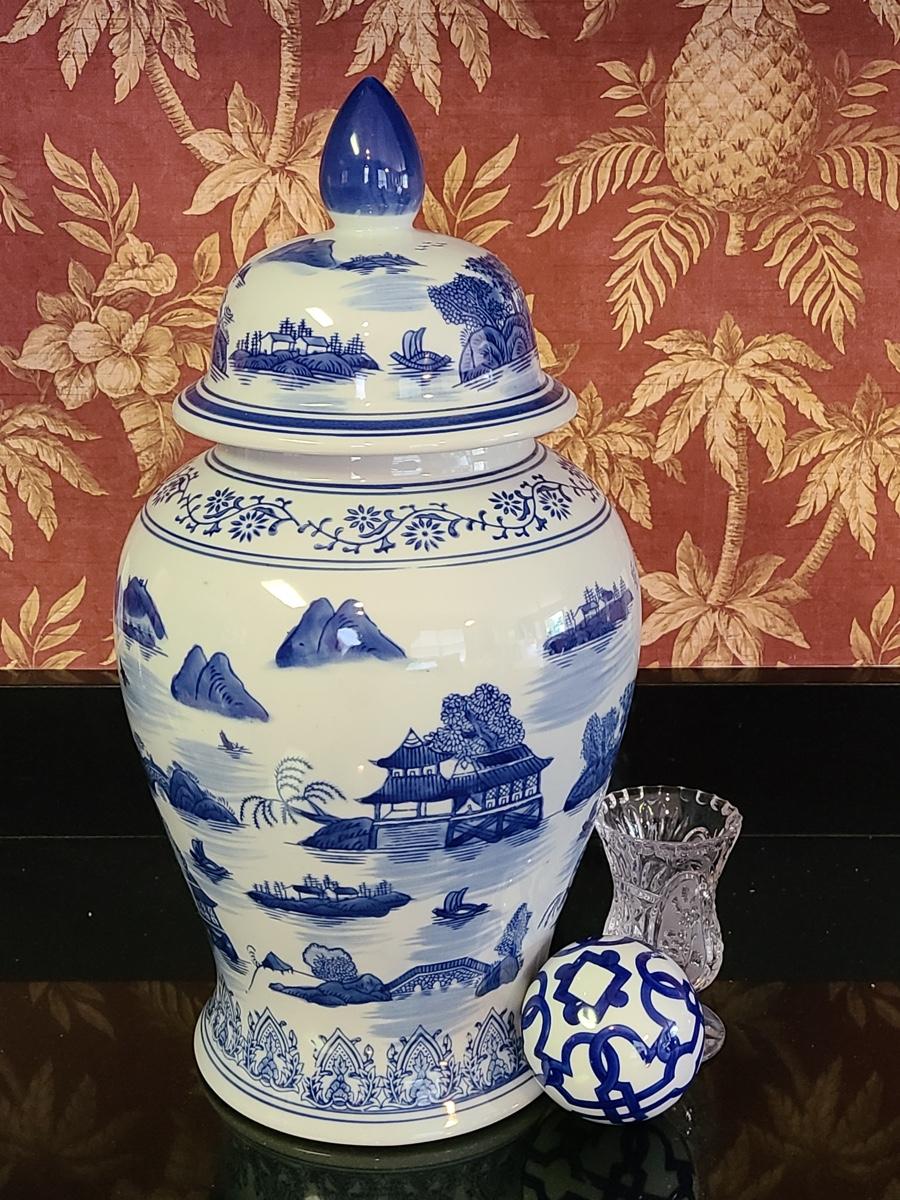 Large vase with lid in blue and whites by Three Hands Corp. Also included is a blue and white round decorative ball and small cut bud vase. The bud vase does have a chip in the lip of the vase. Please see all pictures as they are the best representation of the items. The pictures show condition, measurements if taken, and what is included in the lot. Due to the large amount that we photograph and the time frame, we are not always able to take measurements. All items unless noted, are pre-owned and have been used. If you purchased furniture, you must bring help. We do not allow one person to carry large furniture out on their own. Bring help, tools and a truck for the safety of our client’s homes, and your personal safety. Company policy. Thank you.