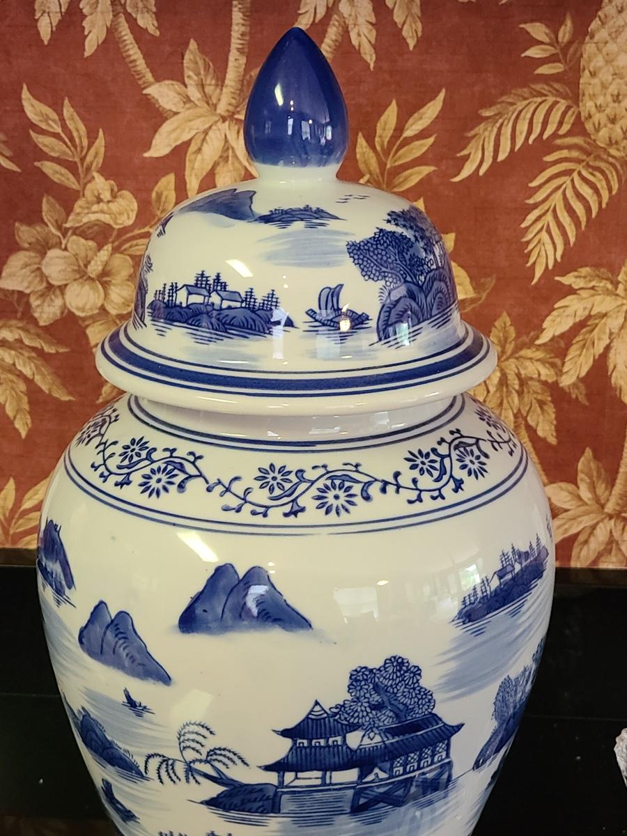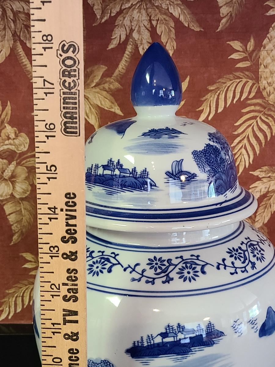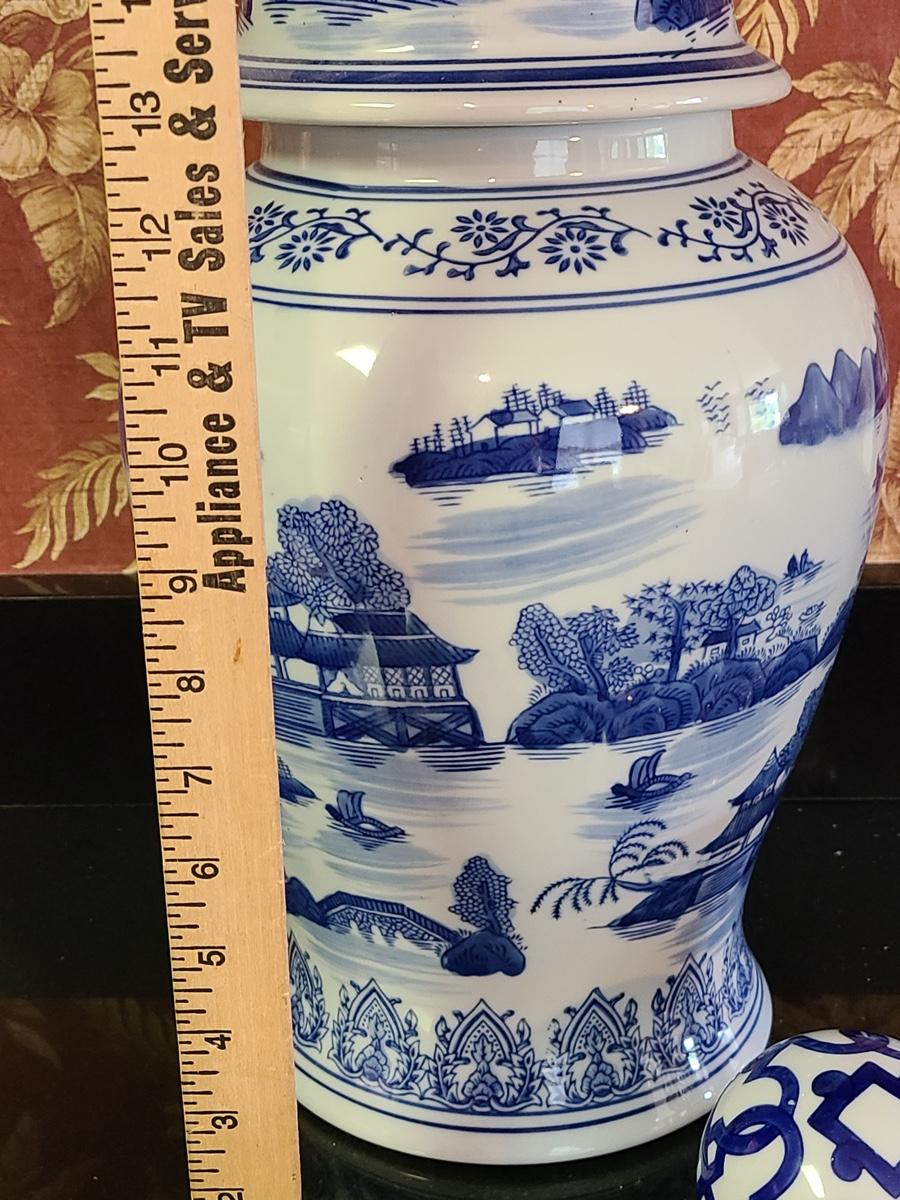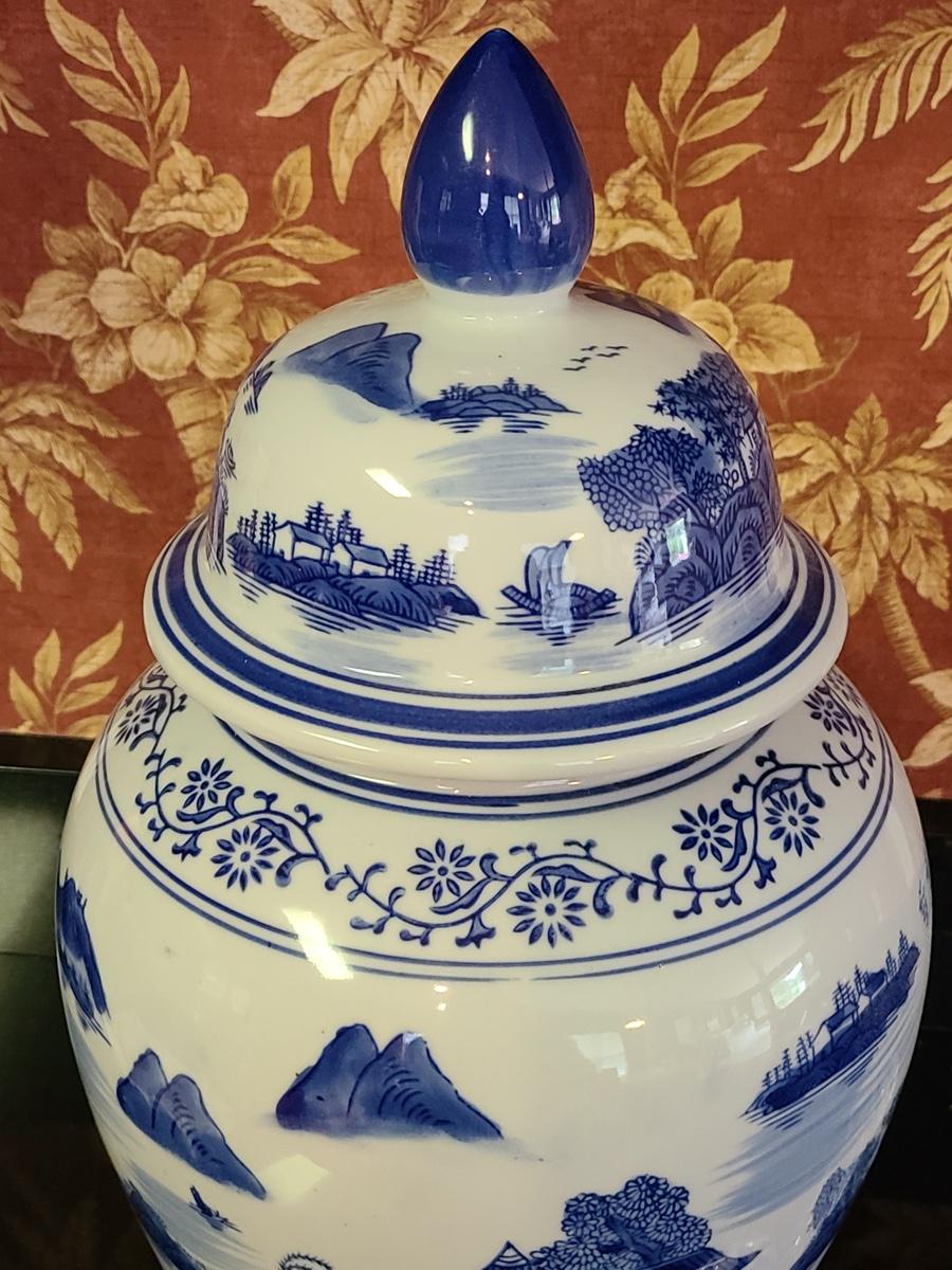 Large vase with lid in blue and whites by Three Hands Corp. Also included is a blue and white round decorative ball and small cut bud vase. The bud vase does have a chip in the lip of the vase. Please see all pictures as they are the best representation of the items. The pictures show condition, measurements if taken, and what is included in the lot. Due to the large amount that we photograph and the time frame, we are not always able to take measurements. All items unless noted, are pre-owned and have been used. If you purchased furniture, you must bring help. We do not allow one person to carry large furniture out on their own. Bring help, tools and a truck for the safety of our client’s homes, and your personal safety. Company policy. Thank you.