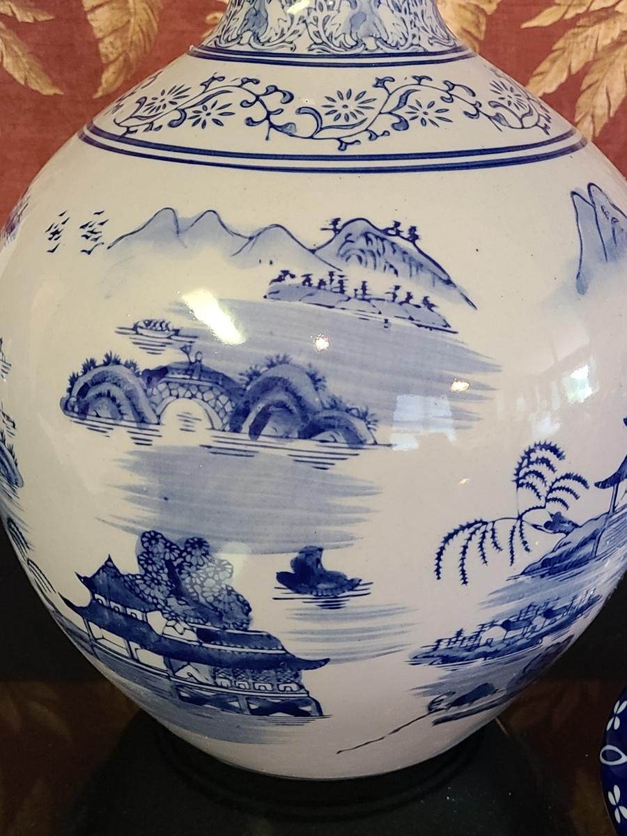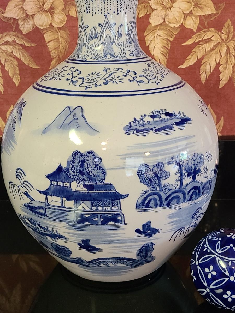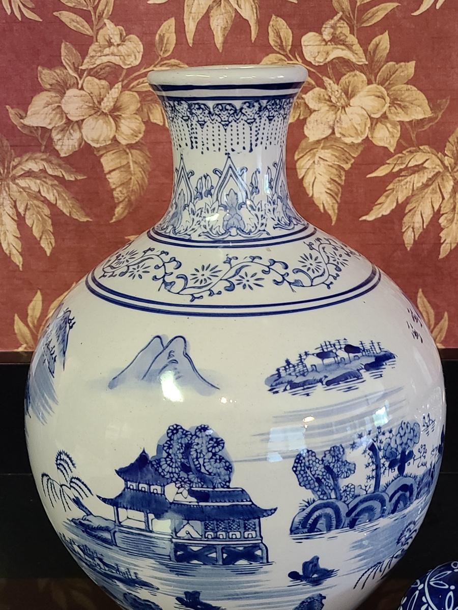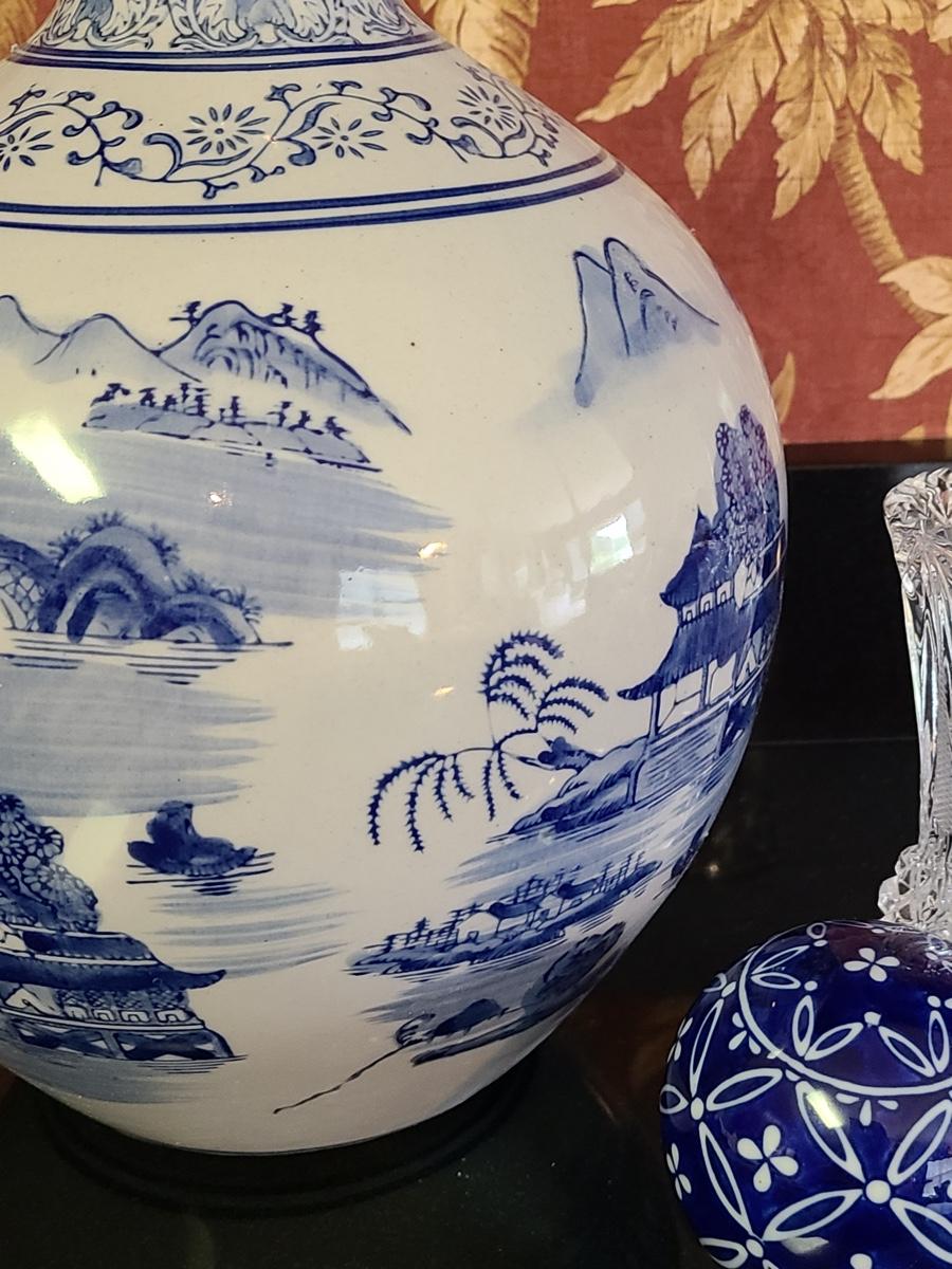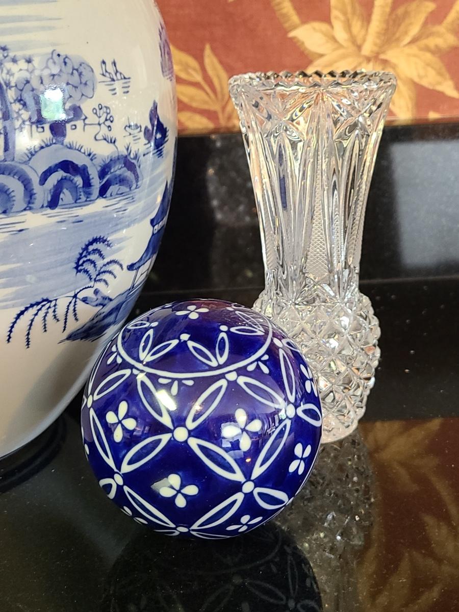 Large blue and white vase by Three Hands Corp and a small accent ball with bud vase. Please see all pictures as they are the best representation of the items. The pictures show condition, measurements if taken, and what is included in the lot. Due to the large amount that we photograph and the time frame, we are not always able to take measurements. All items unless noted, are pre-owned and have been used. If you purchased furniture, you must bring help. We do not allow one person to carry large furniture out on their own. Bring help, tools and a truck for the safety of our client’s homes, and your personal safety. Company policy. Thank you.