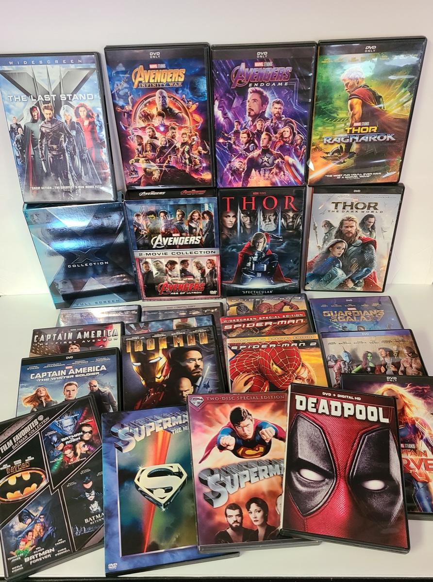 Large lot of Marvel and super hero DVD's. Please see all pictures as they are the best representation of the items. The pictures show condition, measurements if taken, and what is included in the lot. Due to the large amount that we photograph and the time frame, we are not always able to take measurements. All items unless noted, are pre-owned and have been used. If you purchased furniture, you must bring help. We do not allow one person to carry large furniture out on their own. Bring help, tools and a truck for the safety of our client’s homes, and your personal safety. Company policy. Thank you.