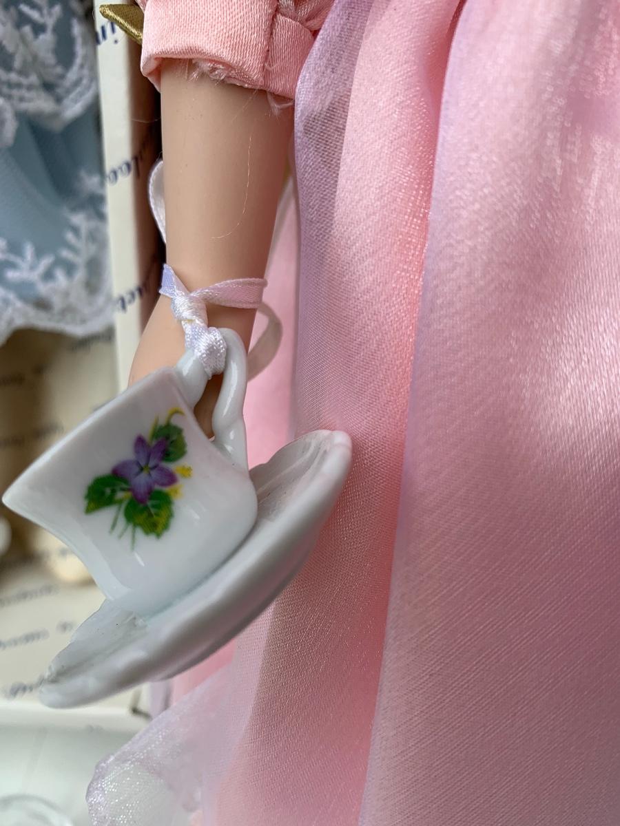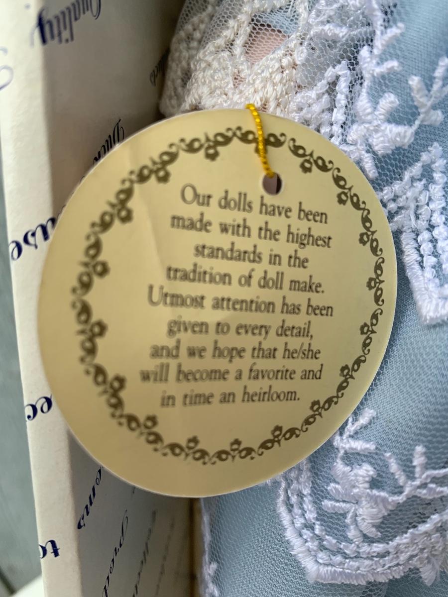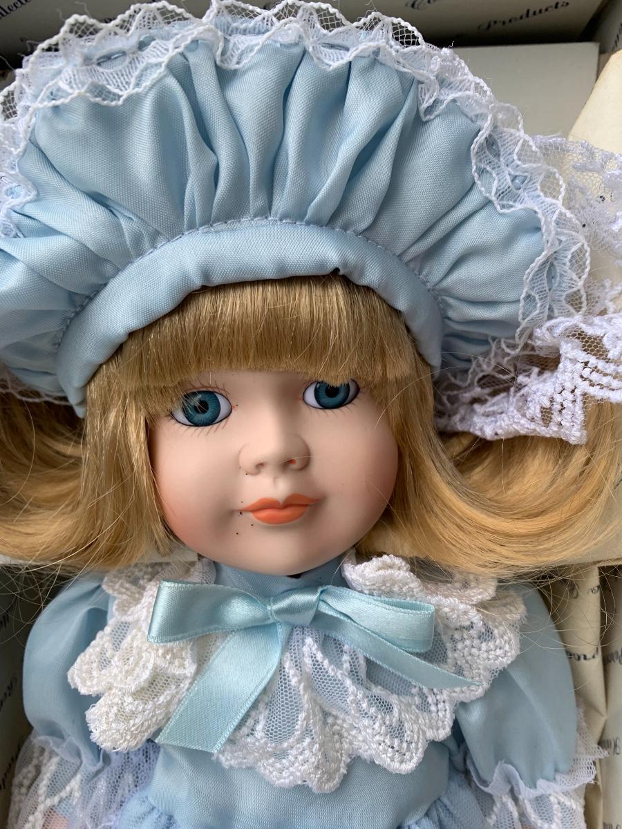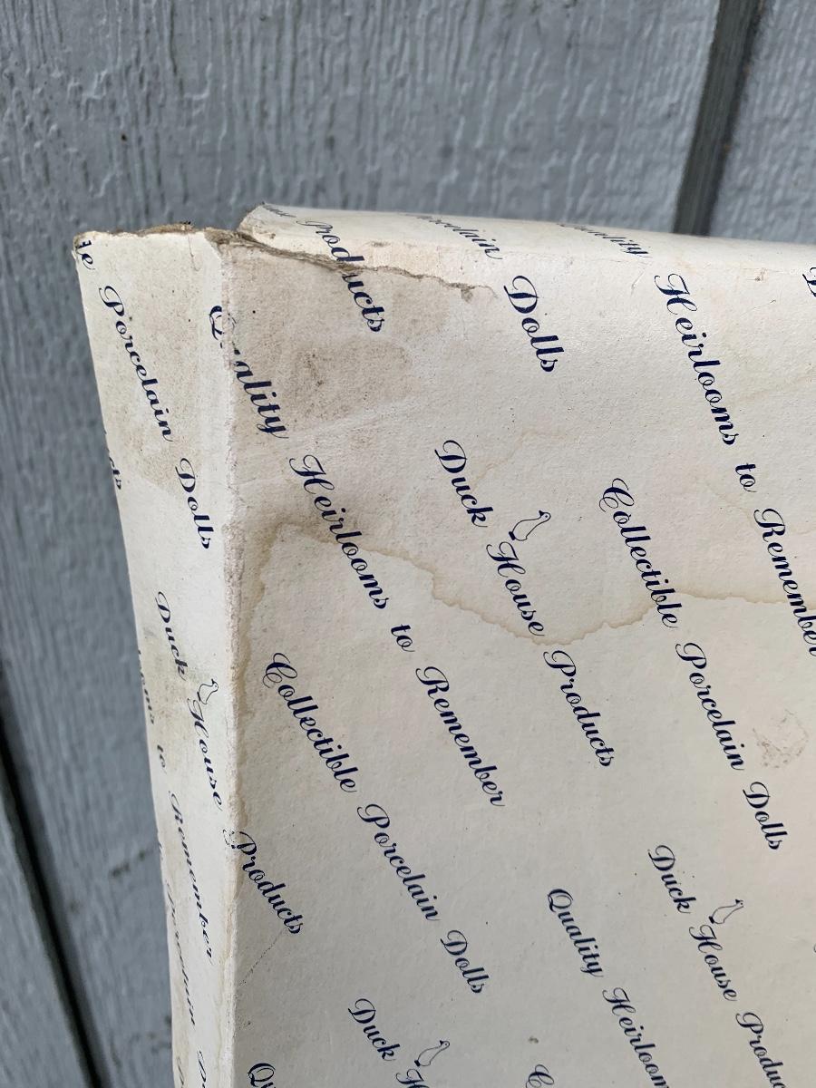 Pair of porcelain dolls are Tea Party ready and the lots has glass basket for "goodies" or decoration. Both boxes to the pair of dolls have condition issues - the dolls do not.