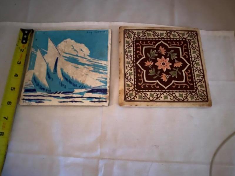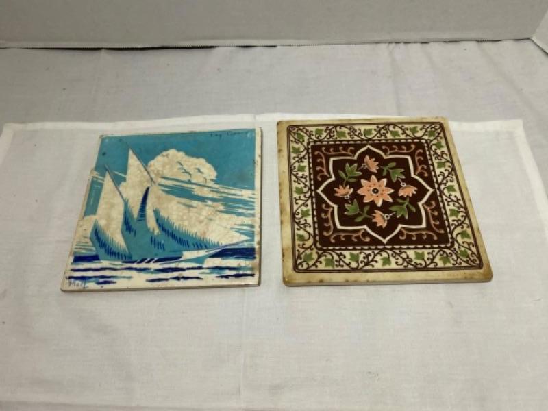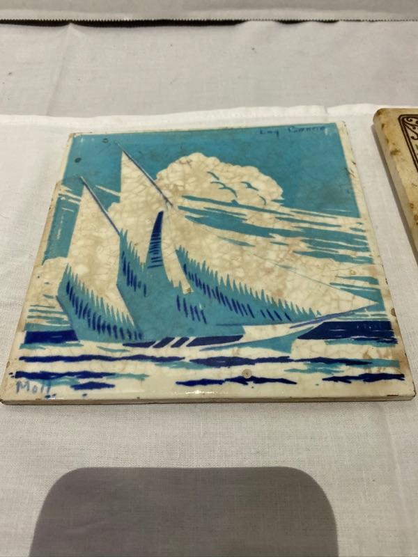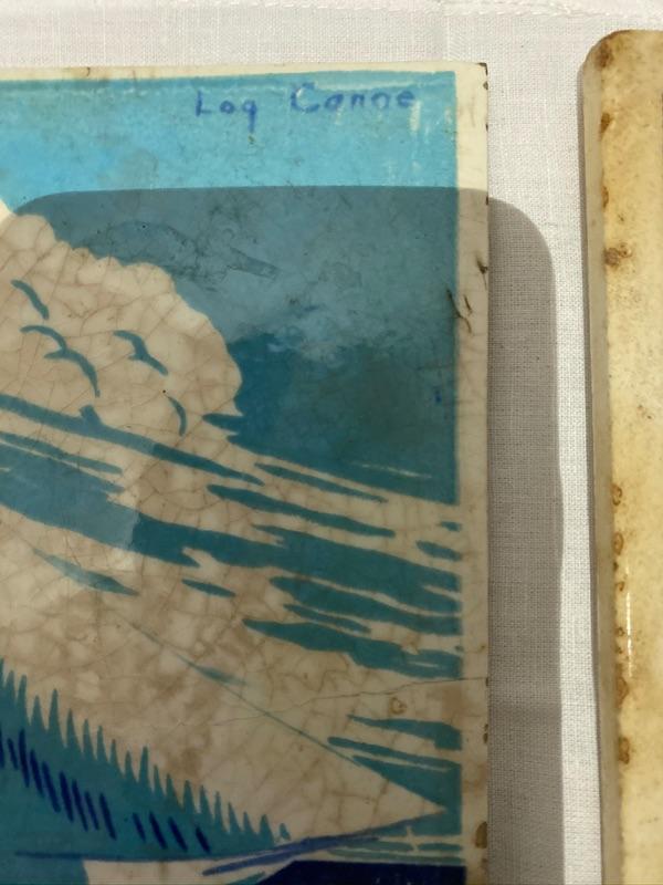 Vintage Moll Tile painted “ Log Canoe “ 6” x 6”