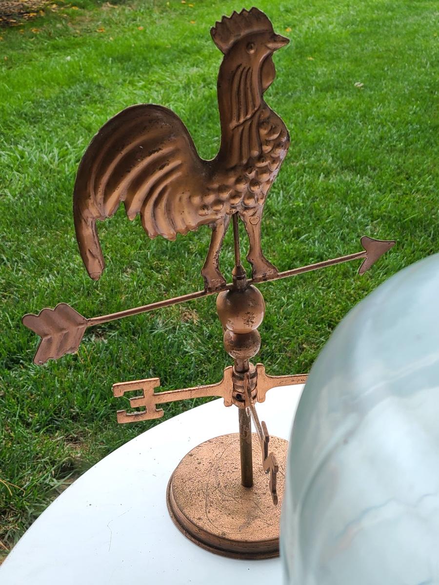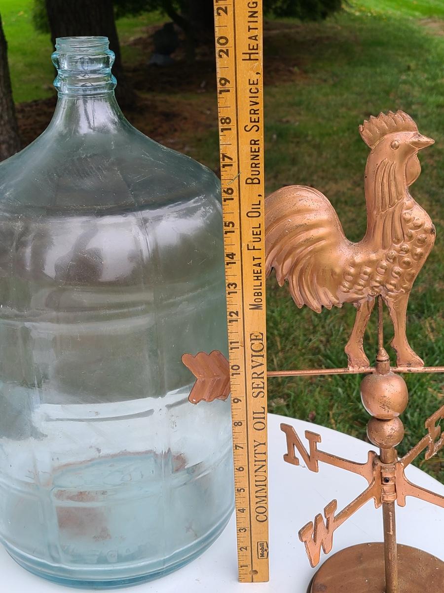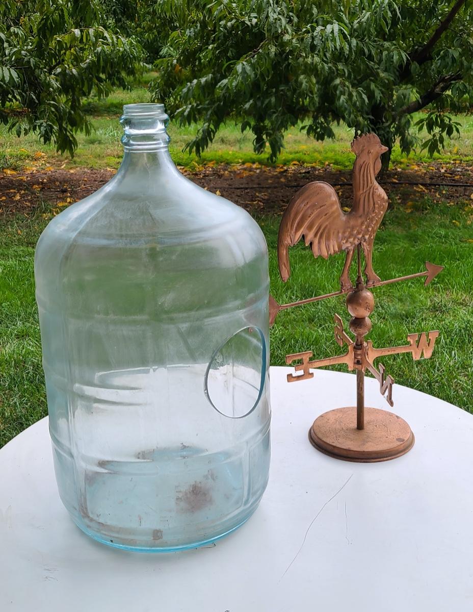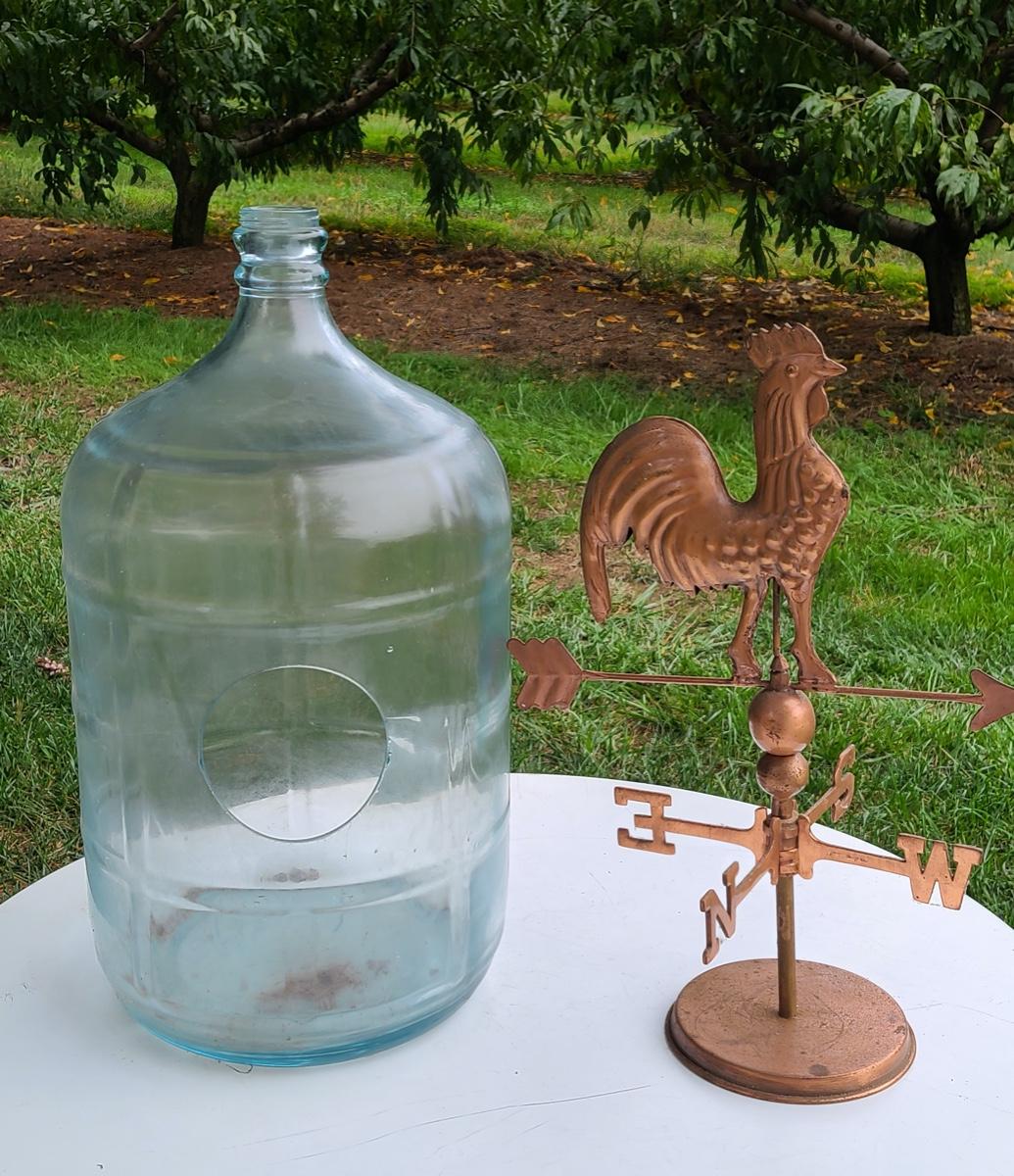 Lot 150: Farm Finds: Weather Vane Stand and Cut Out Carboy Bottle