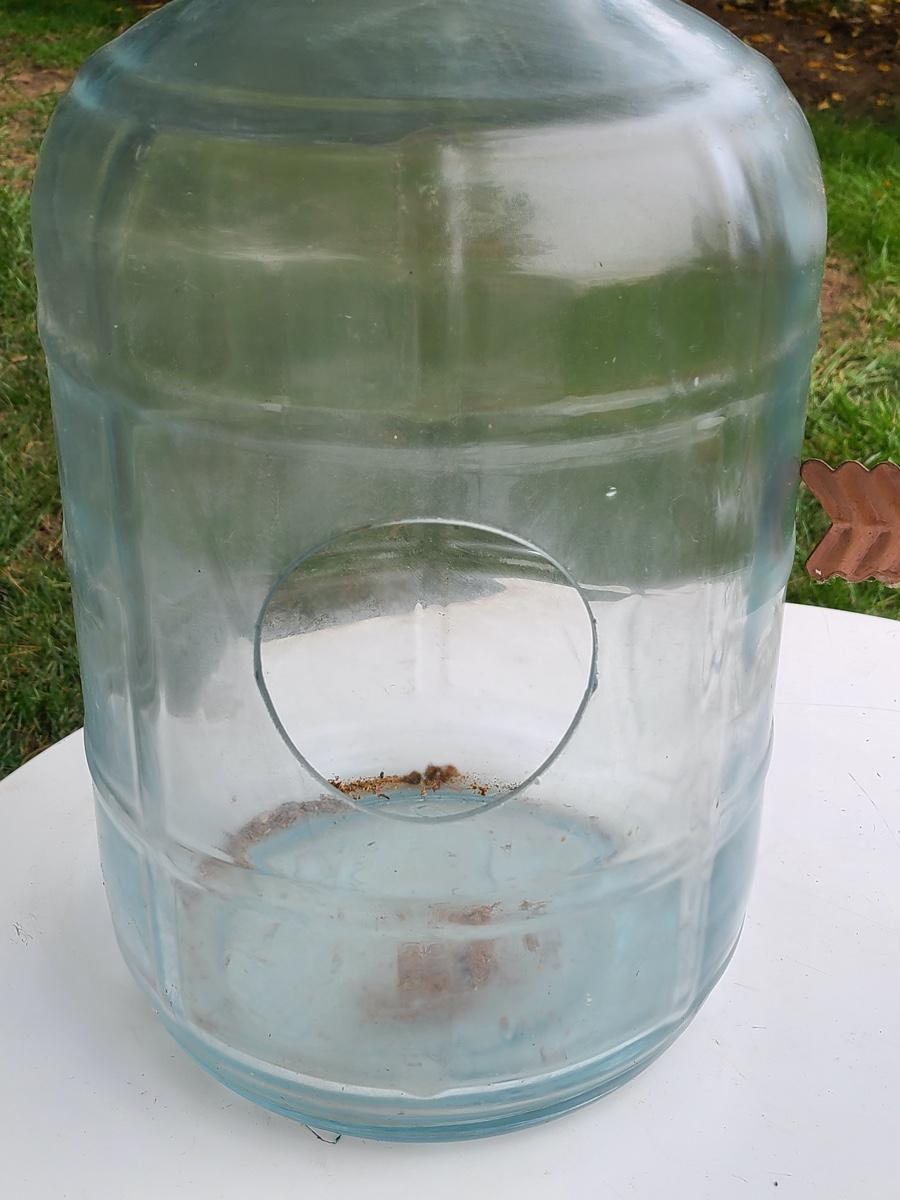 Fun farm finds. This large Carboy bottle has a circle cut out in front that makes the interior accessible. It is not sharp, and you can put your hand in. Can be used for coins, storage, or as a unique planter! The pictures show condition, measurements if taken, and what is included in the lot. Due to the large amount that we photograph and the time frame, we are not always able to take measurements. All items unless noted, are pre-owned and have been used. If you purchased furniture, you must bring help. We do not allow one person to carry large furniture out on their own. Bring help, tools and a truck for the safety of our client’s homes, and your personal safety. Company policy. Thank you.