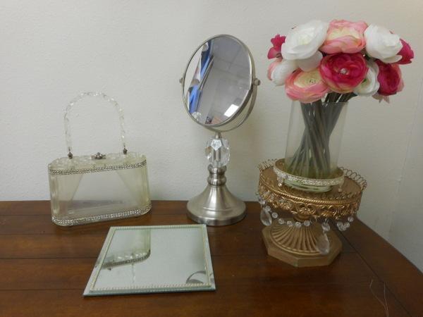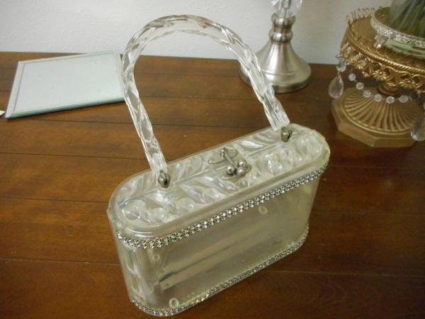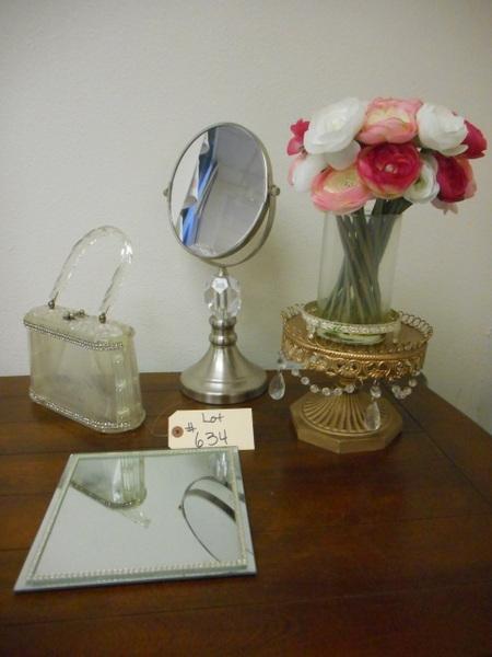 Lot 634 - Adorable Lucite & Rhinestone Purse, 2 Sided Mirror + More