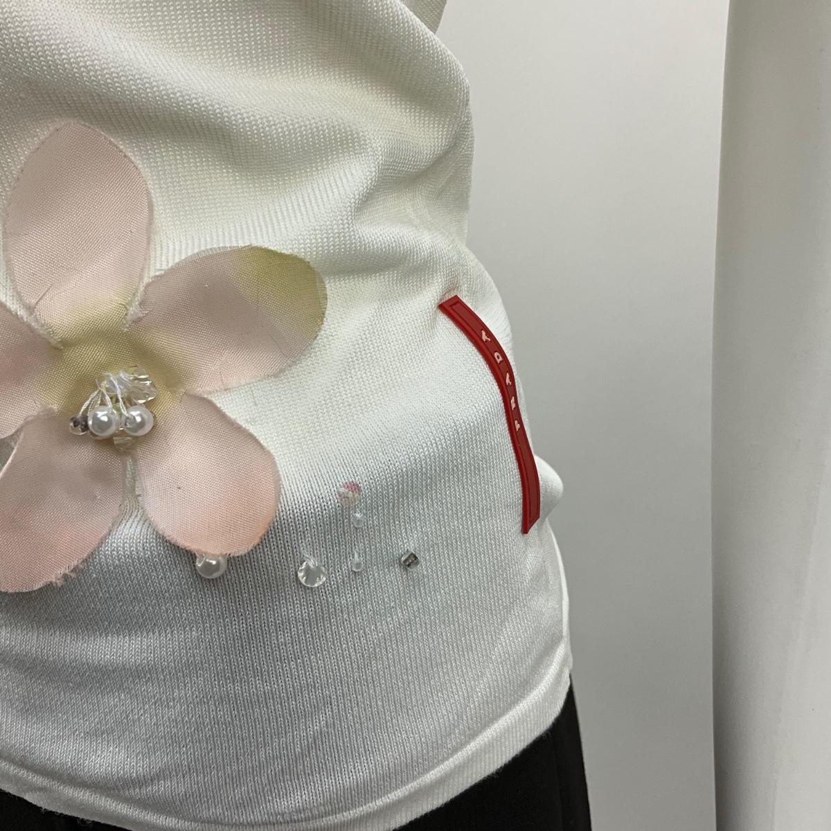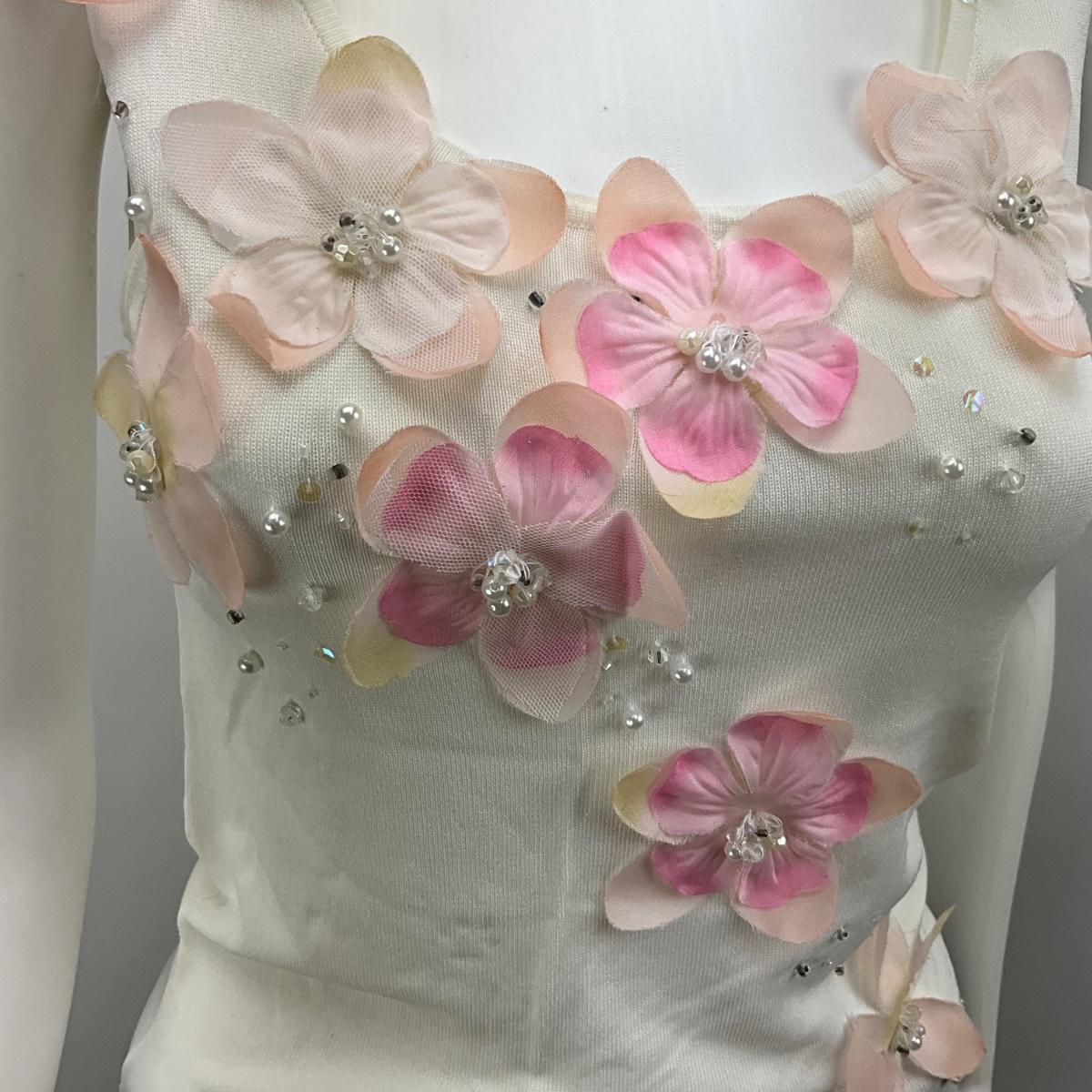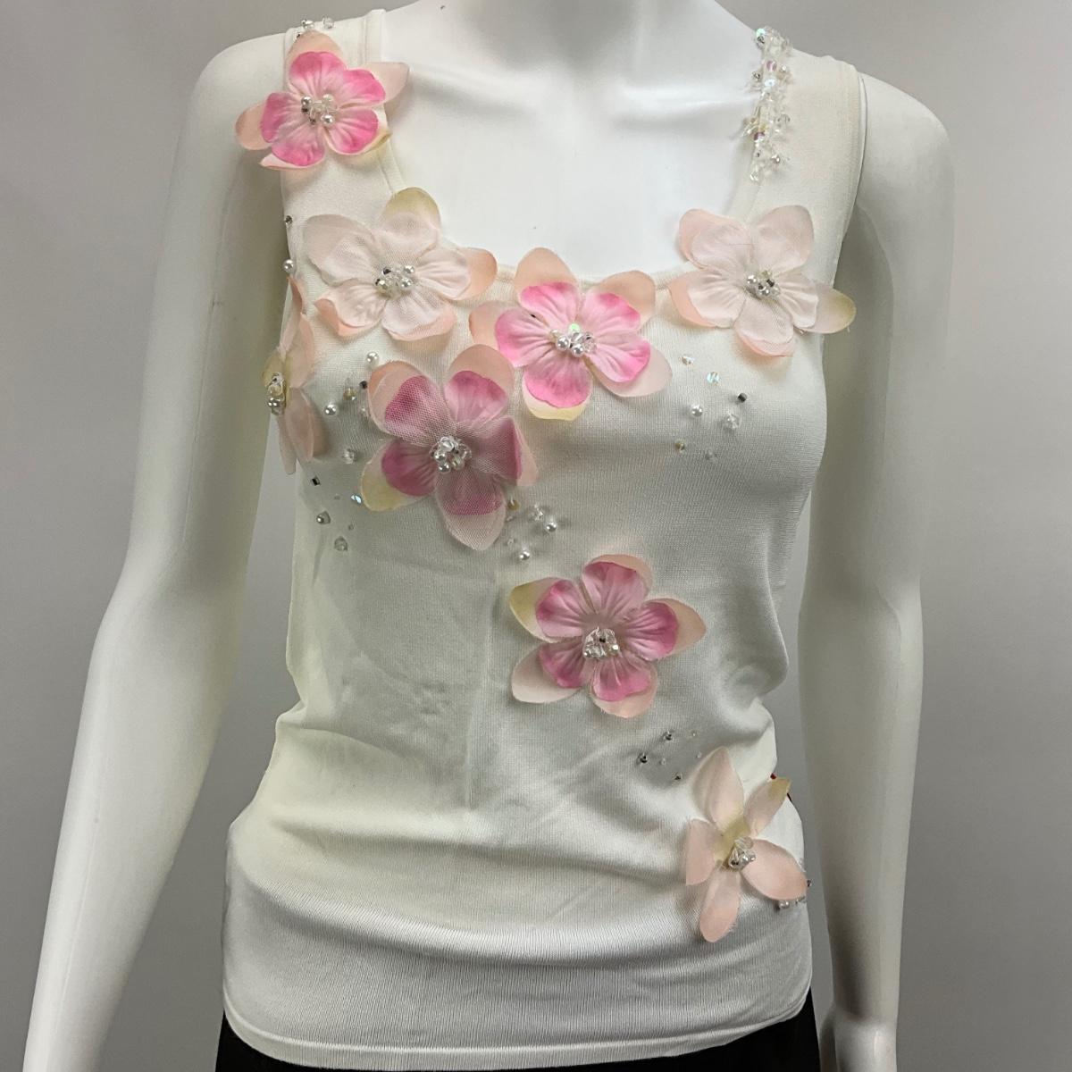Lot 634 PRADA White Tank with Flowers Bead Work