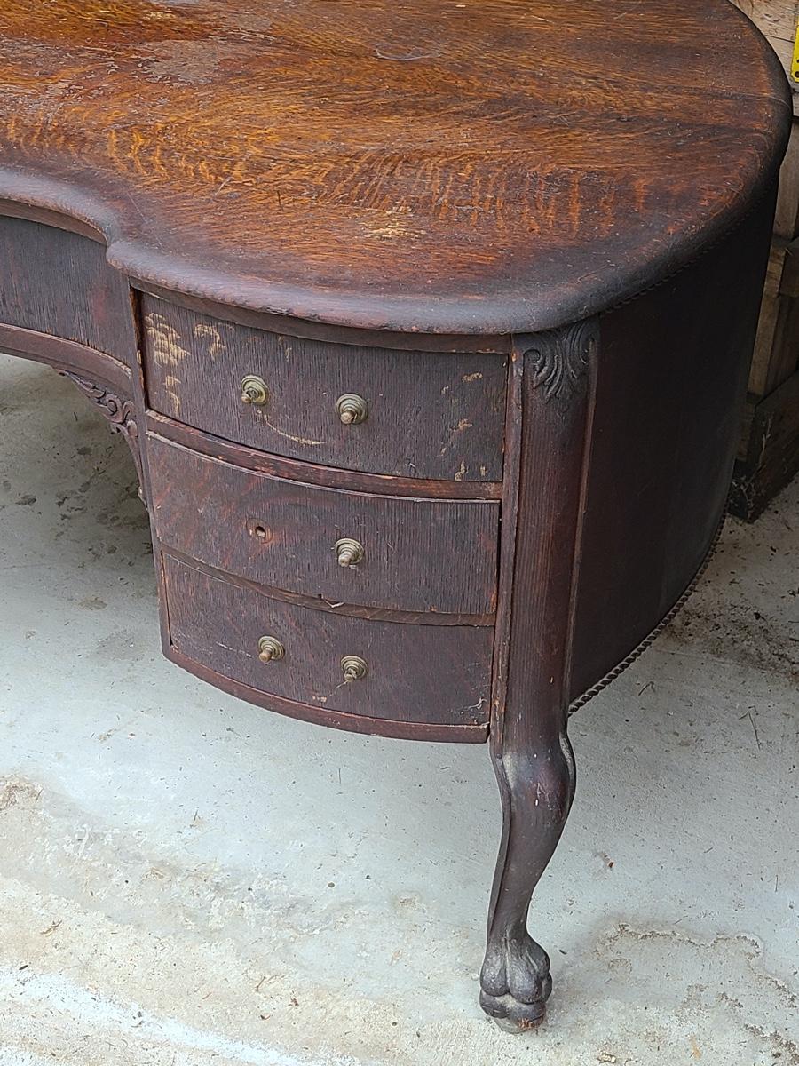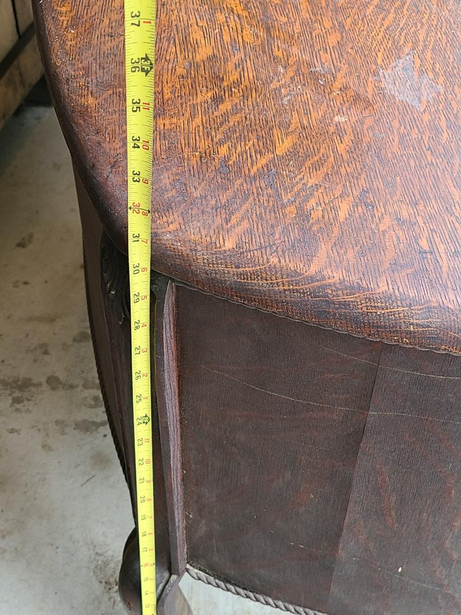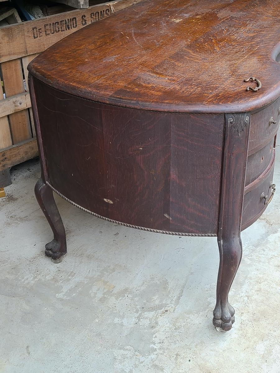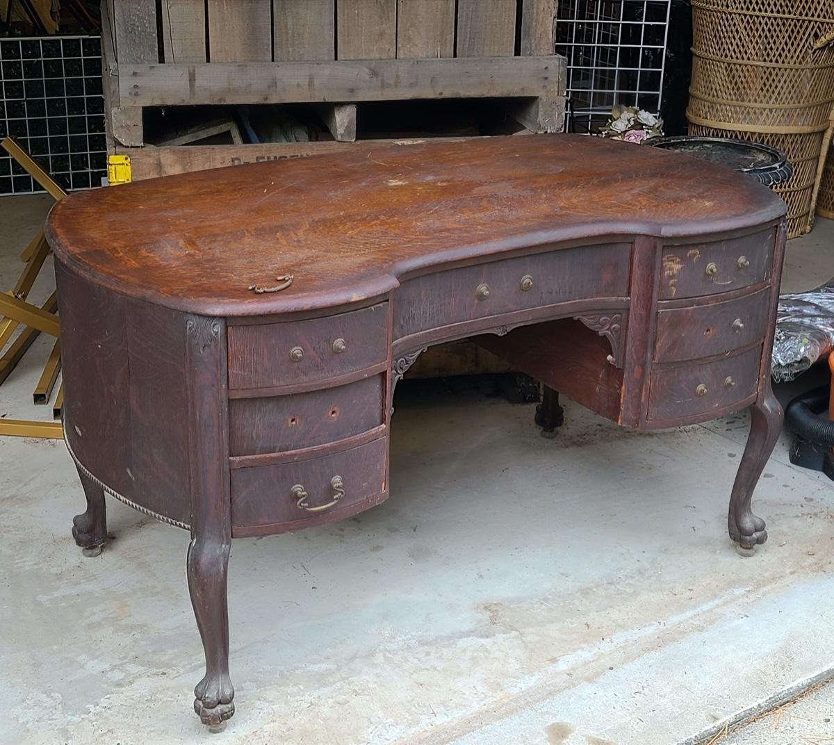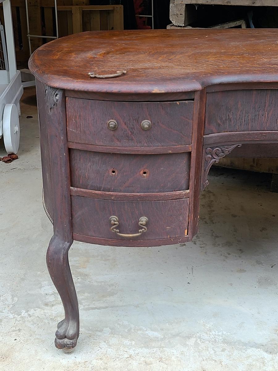 This piece has been stored in old barn building and has great bones, but could use an up-cycling. It would look amazing chalk-painted, because it has details that would pop and the back is flat so it can go in the middle of an office! You will need to bring a truck and help to move! This is large in size. The pictures show condition, measurements if taken, and what is included in the lot. Due to the large amount that we photograph and the time frame, we are not always able to take measurements. All items unless noted, are pre-owned and have been used. If you purchased furniture, you must bring help. We do not allow one person to carry large furniture out on their own. Bring help, tools and a truck for the safety of our client’s homes, and your personal safety. Company policy. Thank you.