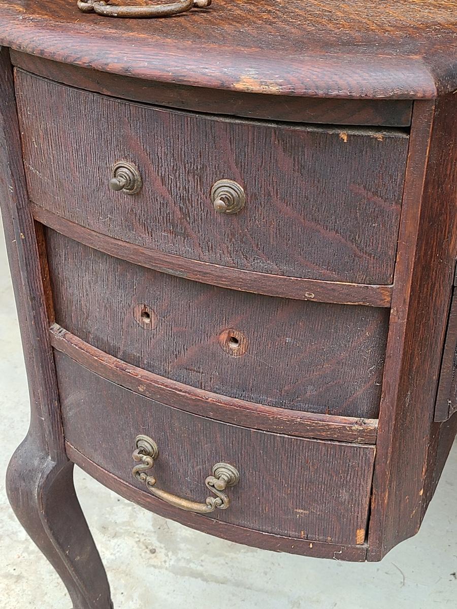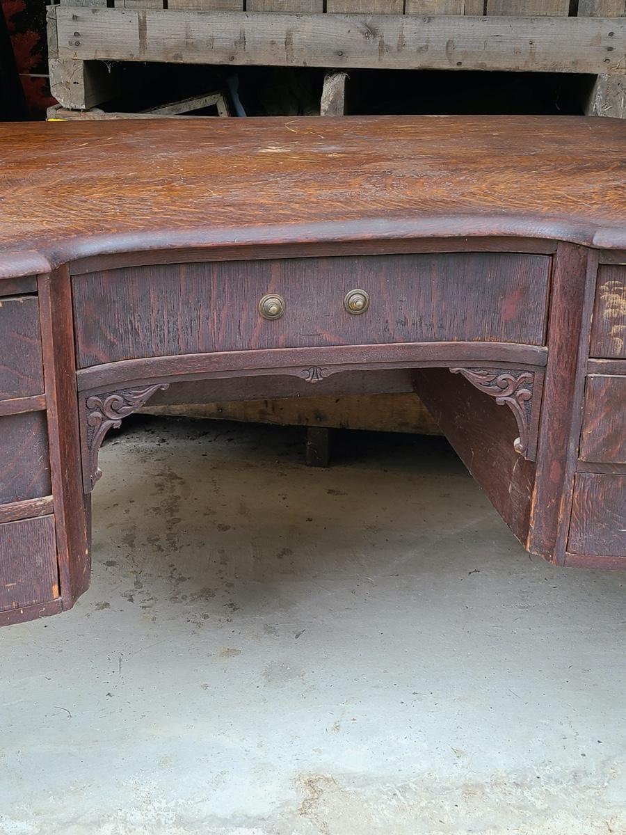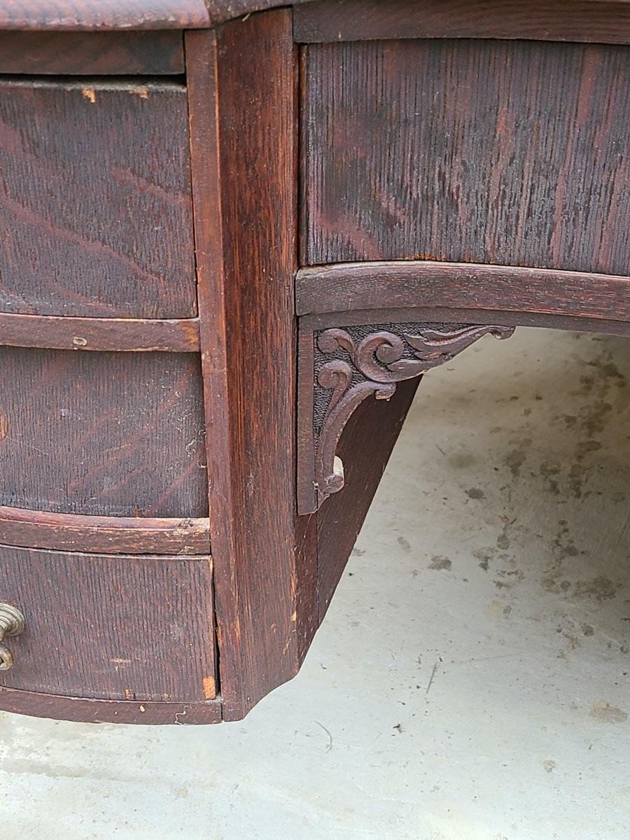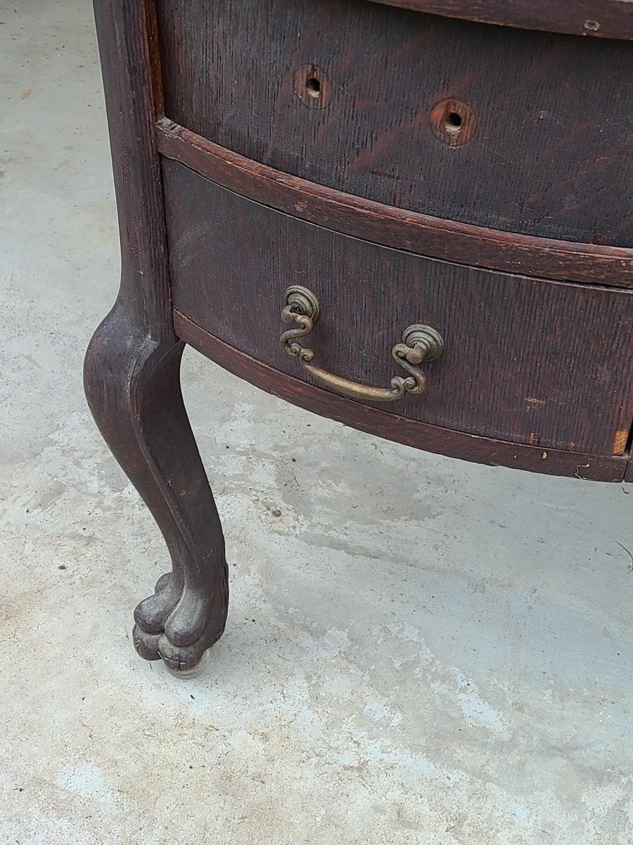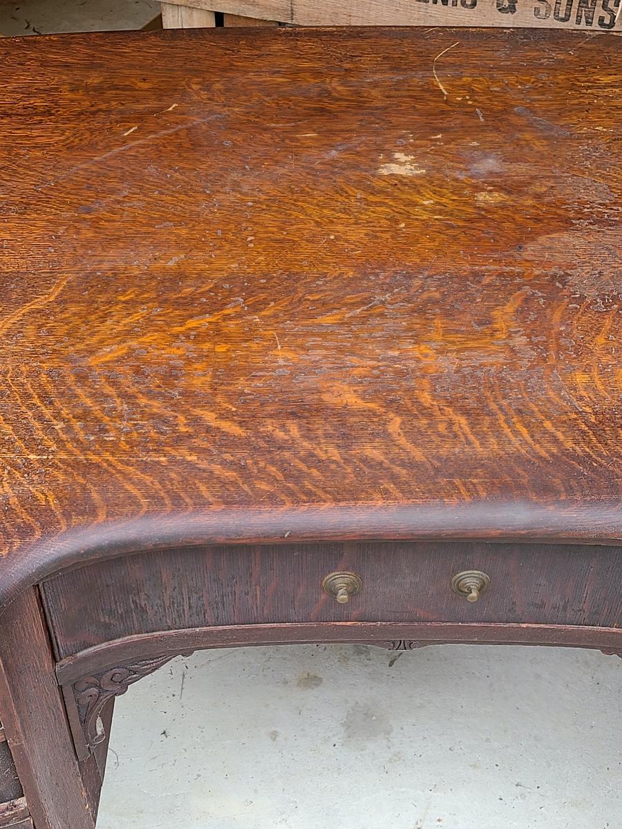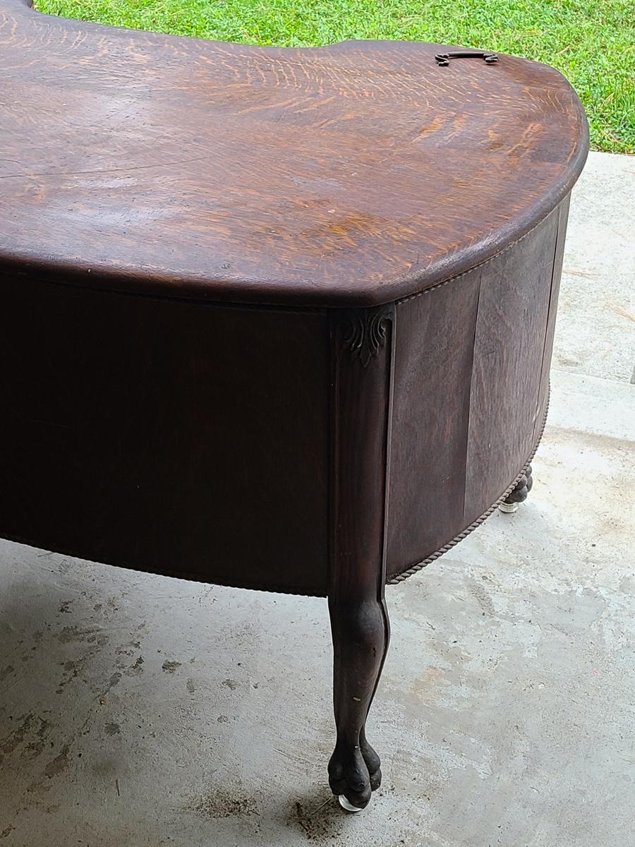This piece has been stored in old barn building and has great bones, but could use an up-cycling. It would look amazing chalk-painted, because it has details that would pop and the back is flat so it can go in the middle of an office! You will need to bring a truck and help to move! This is large in size. The pictures show condition, measurements if taken, and what is included in the lot. Due to the large amount that we photograph and the time frame, we are not always able to take measurements. All items unless noted, are pre-owned and have been used. If you purchased furniture, you must bring help. We do not allow one person to carry large furniture out on their own. Bring help, tools and a truck for the safety of our client’s homes, and your personal safety. Company policy. Thank you.