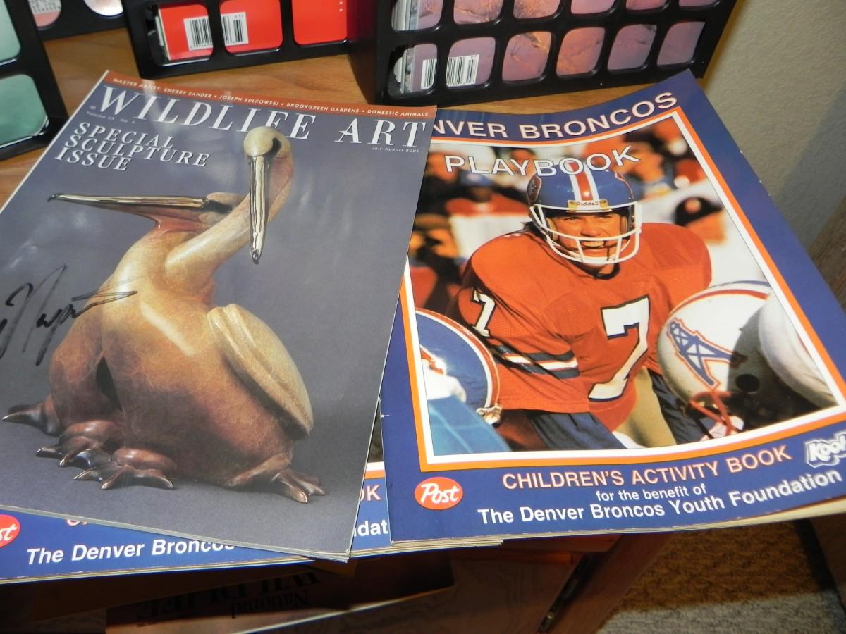 BRONCOS, SIGNED AND HOLDERS FOR MAGAZINES, BOOKS, CROSSWORDS AND MORE