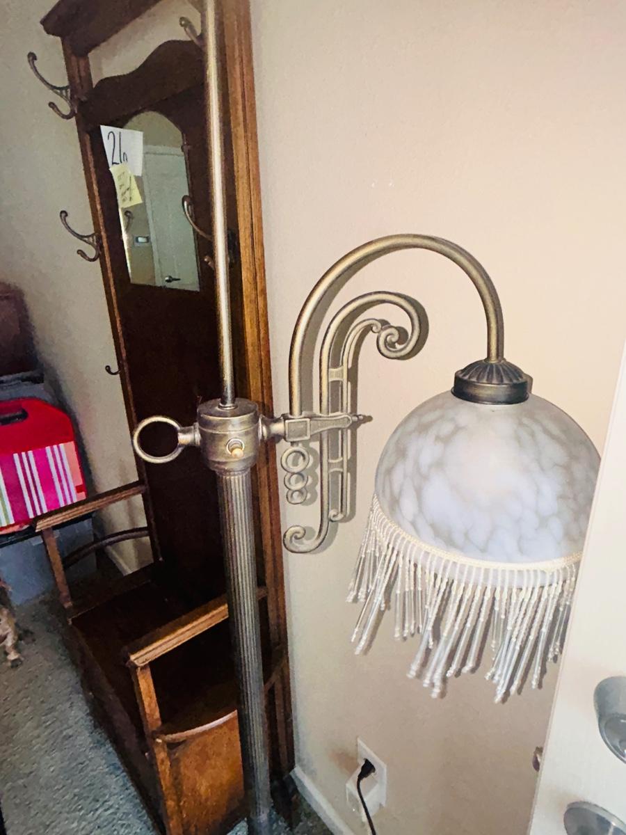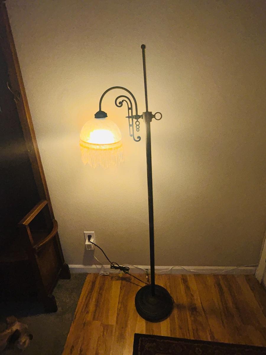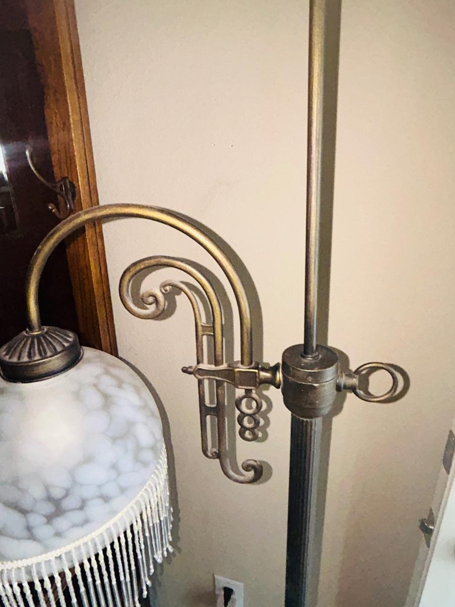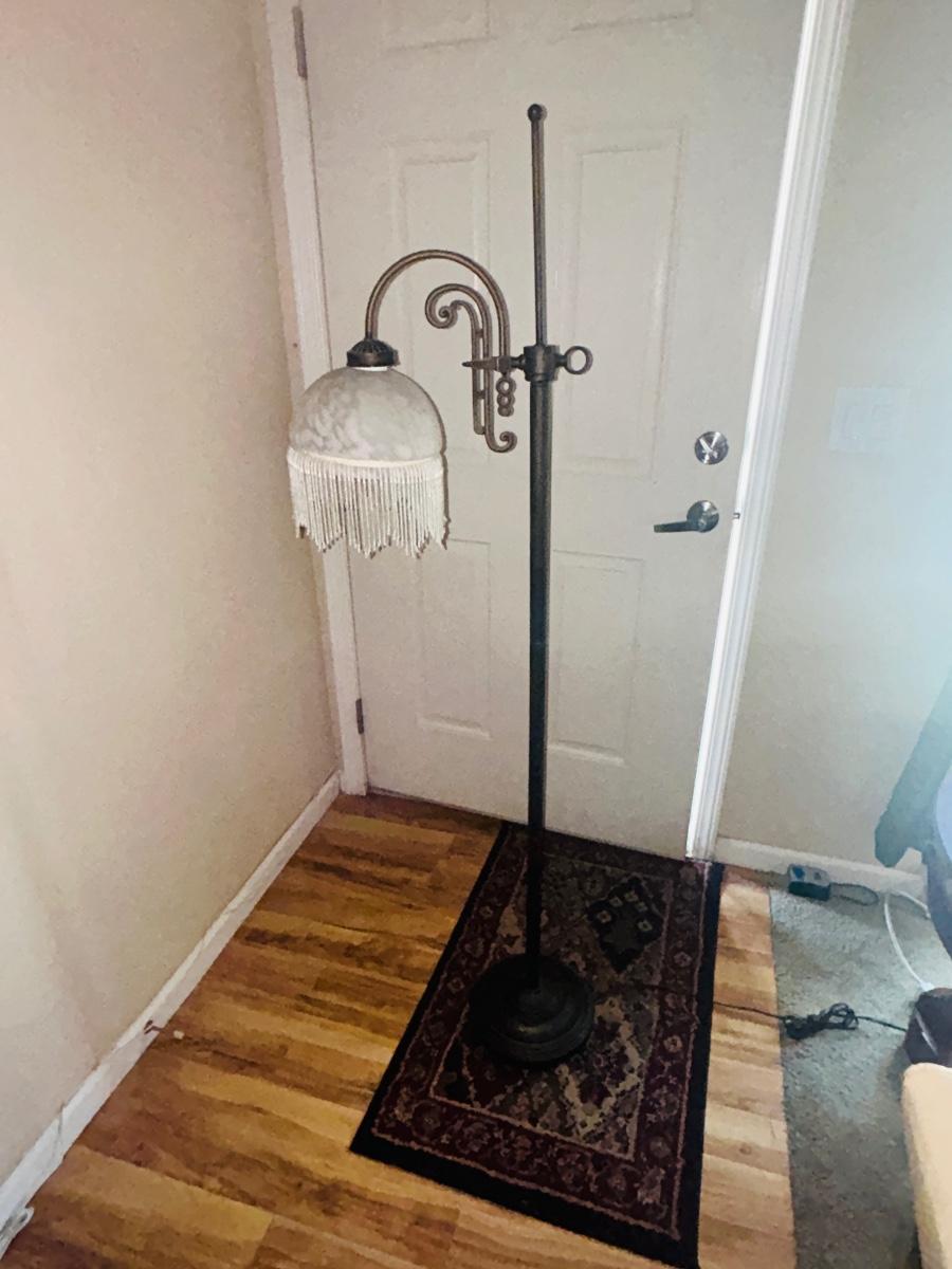 62” TALL BEAUTIFUL FLOOR LAMP WITH FROSTED GLASS AND BEADED SHADE