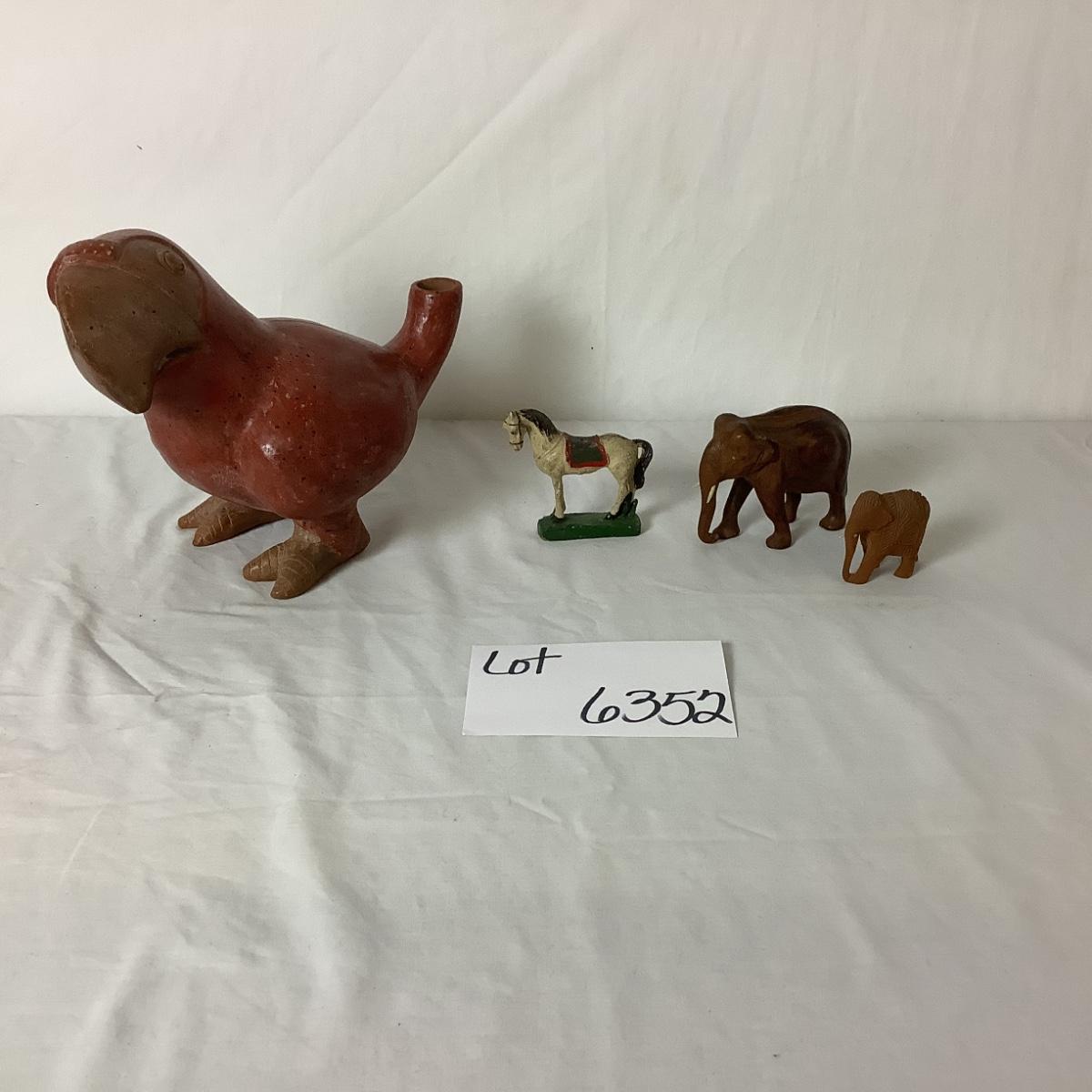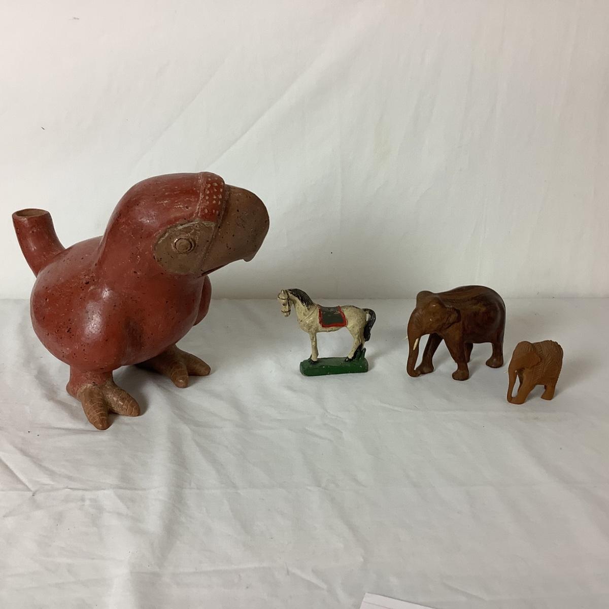 Lot 6352 Vintage Ceramic Figure of a Parrot. Pair of Hand Carved Wooden Elephants, Wooden Carved Horse