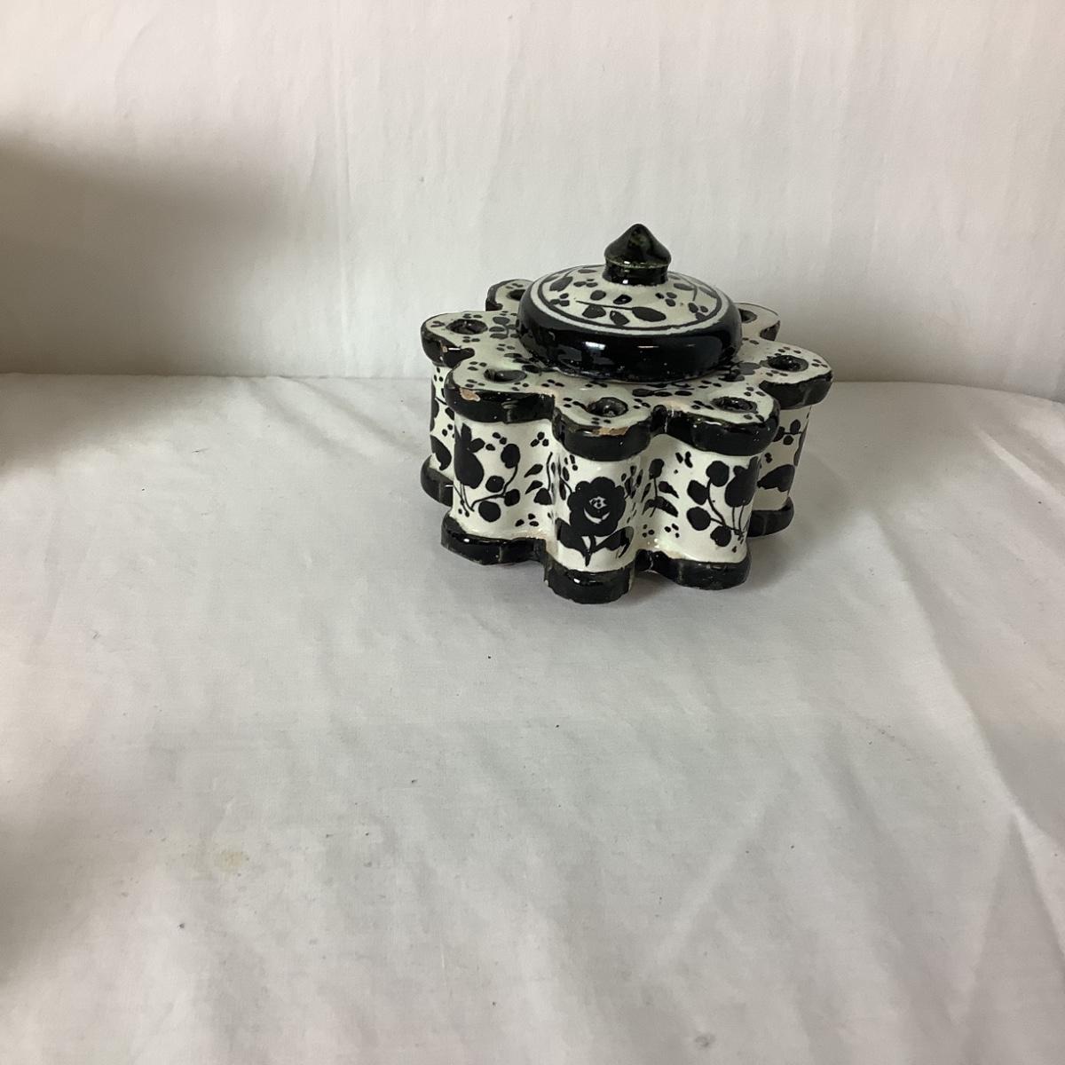 Italian, Hand Painted Ceramic Ink Well,
