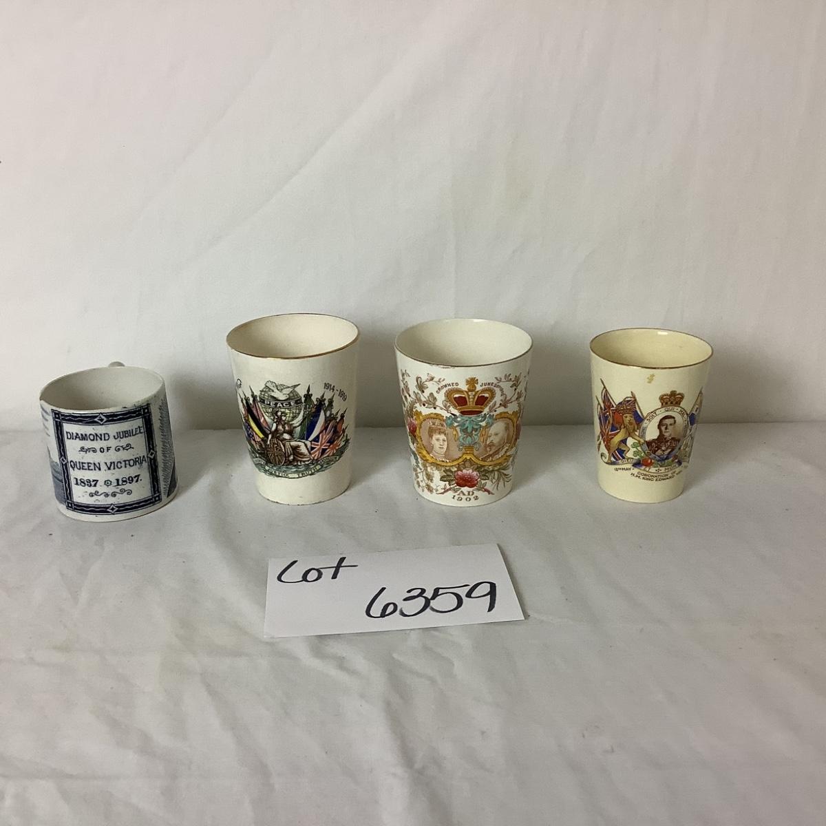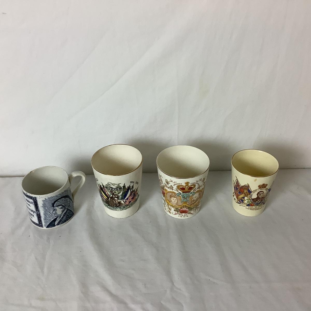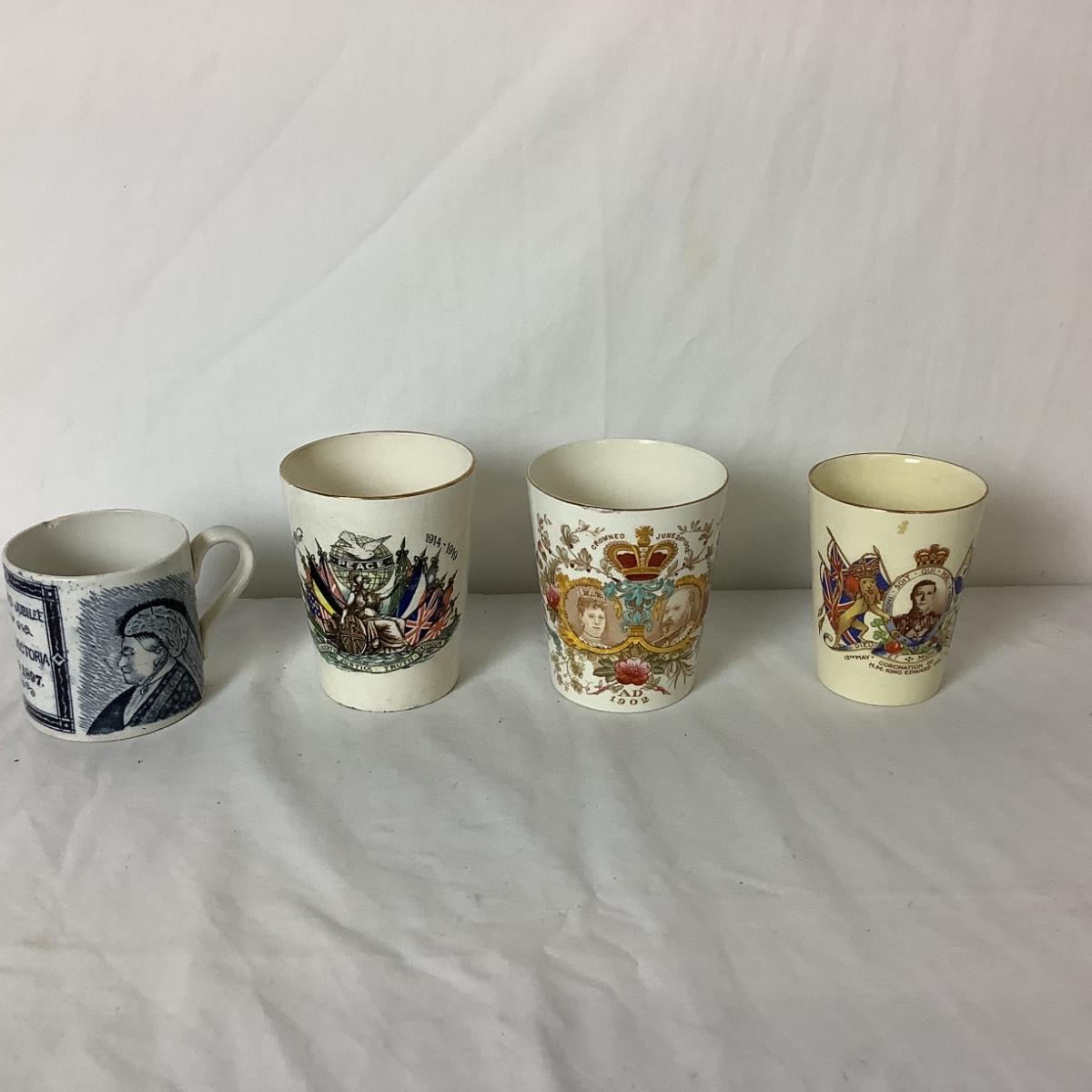 Lot 6359. Antique Queen Elizabeth Coronation Beakers & Mug