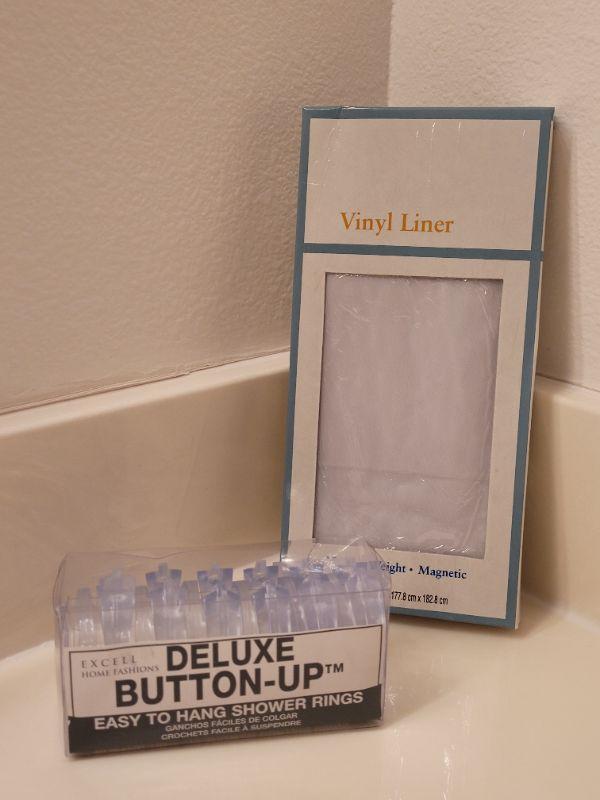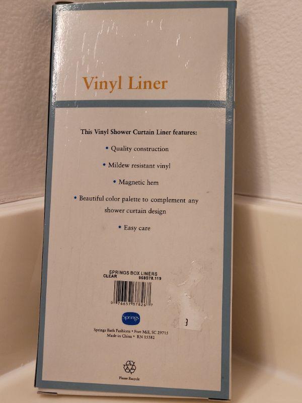 Lot 636: New Vinyl Shower Curtain Liner and Rings