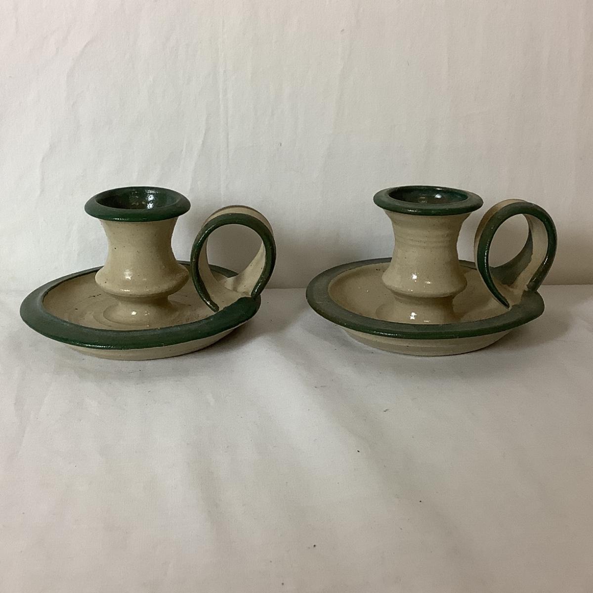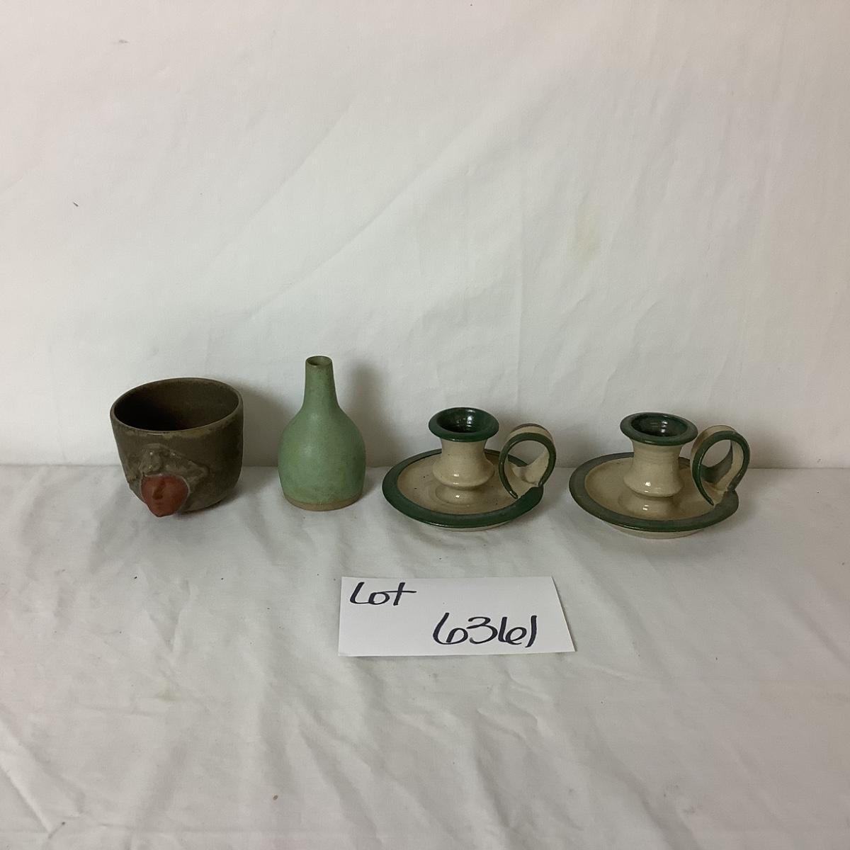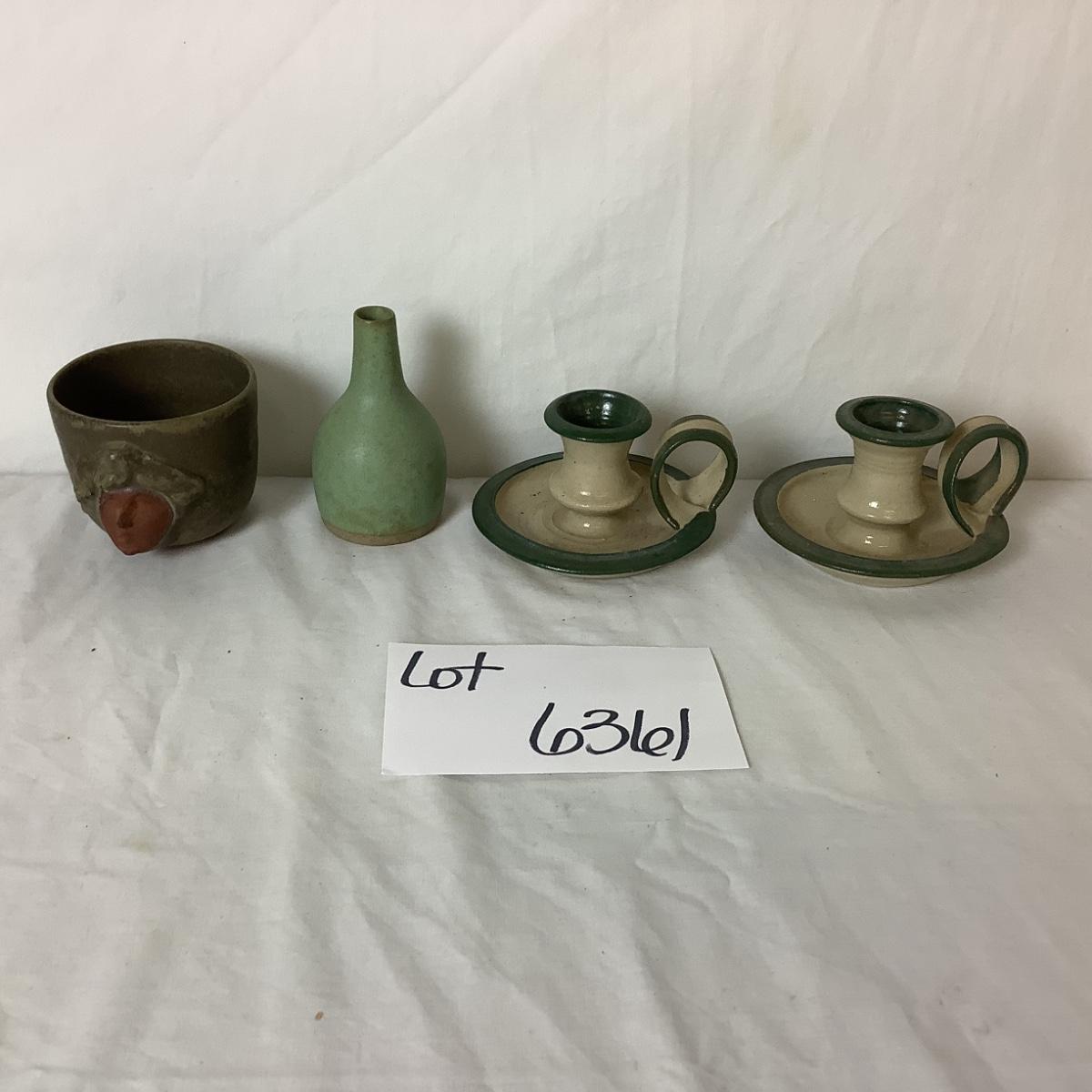 Lot 6361  Pair of Stoneware Finger Candle Holder, Small Stone Bud Vase, Decorative Salt-glazed Cup
