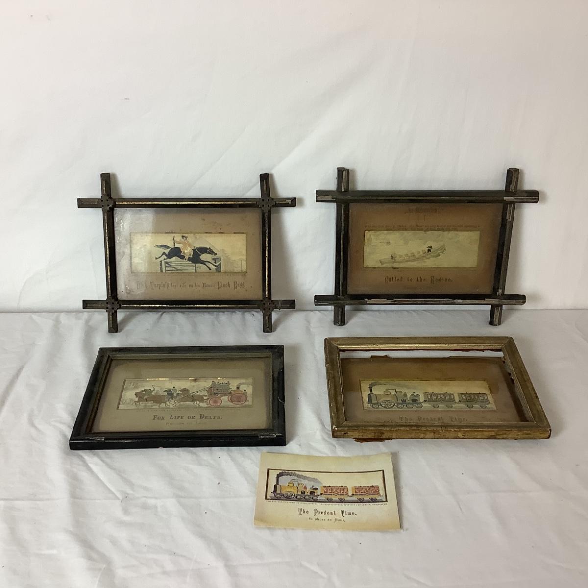 Four Antique Woven in pure Silk by Thomas Stevens Framed Illustrations