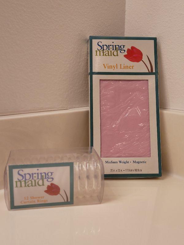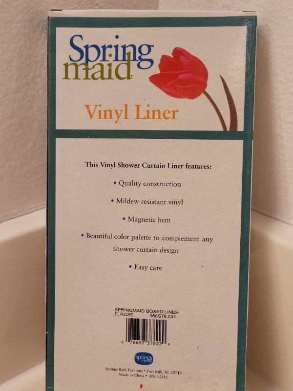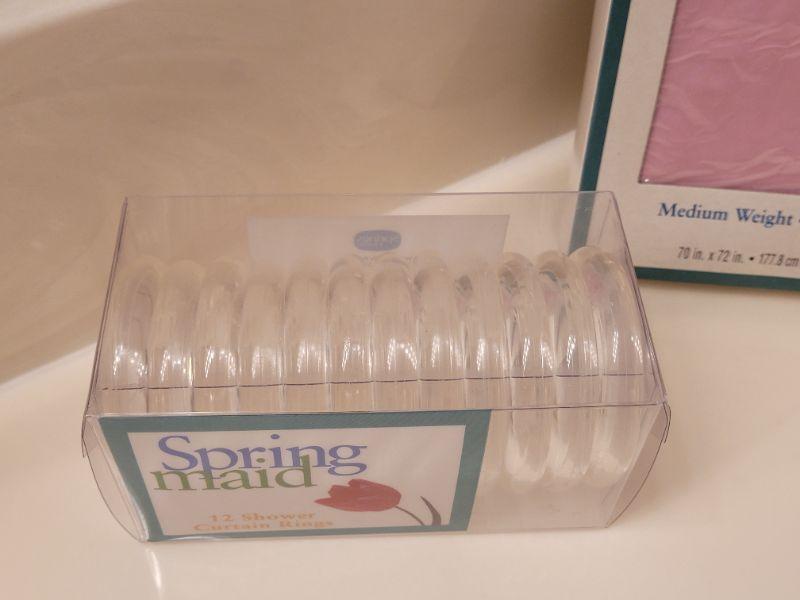 Lot 637: New Pink Vinyl Shower Curtain Liner and Rings