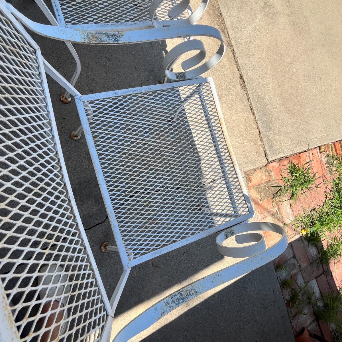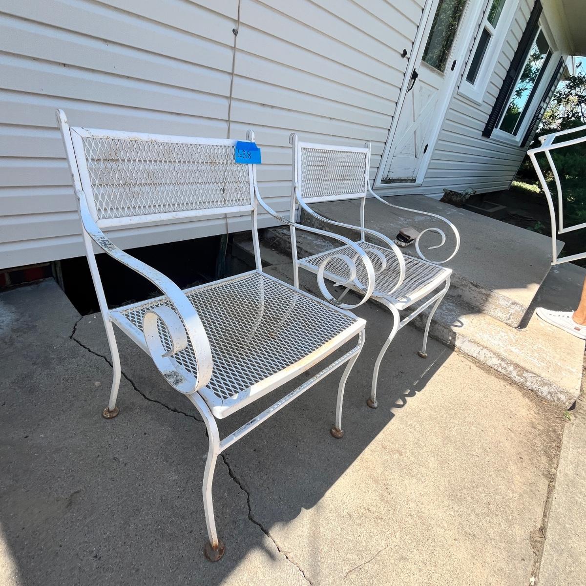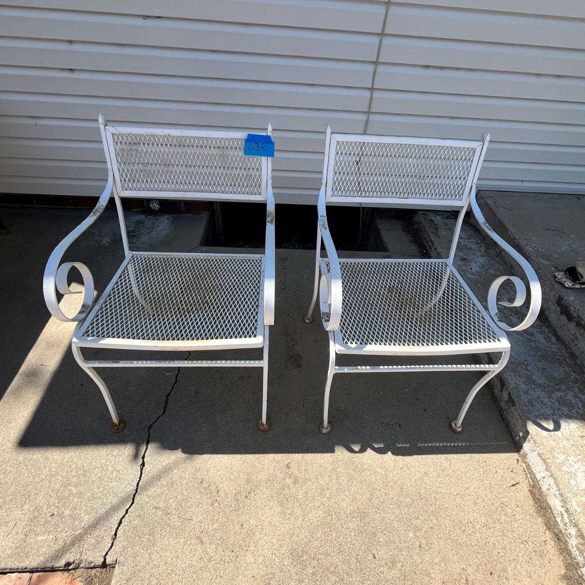 Lot 638 White metal patio chairs
