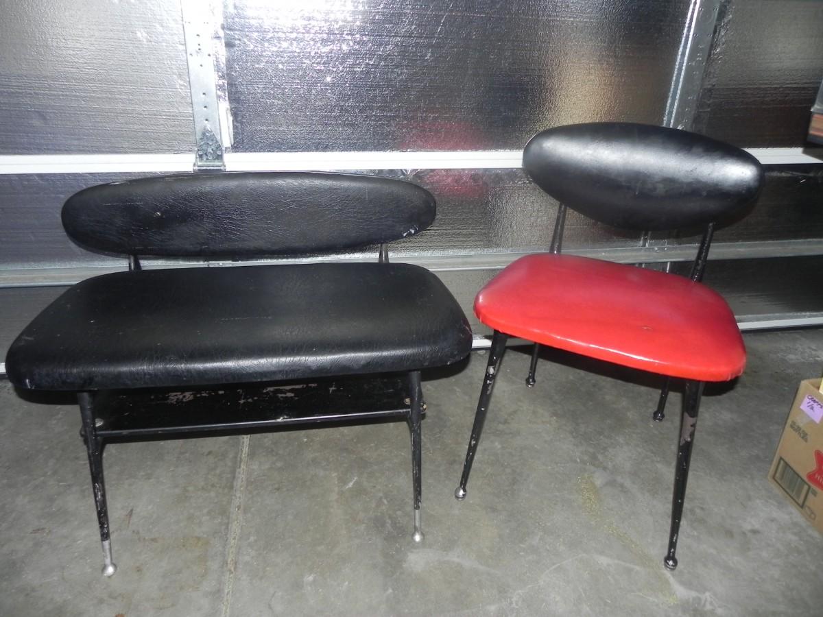 COOL VINTAGE VINYL CHAIR AND BENCH