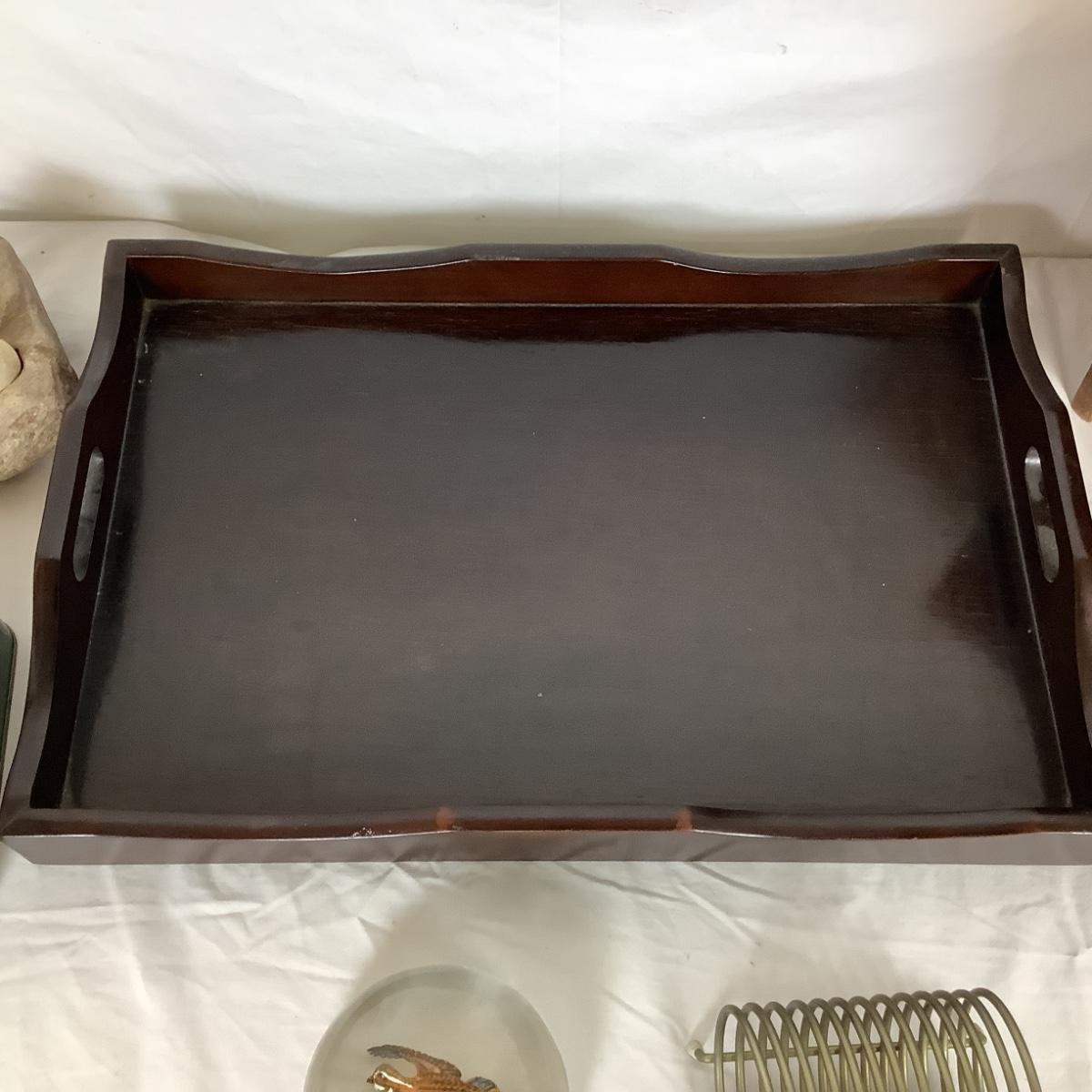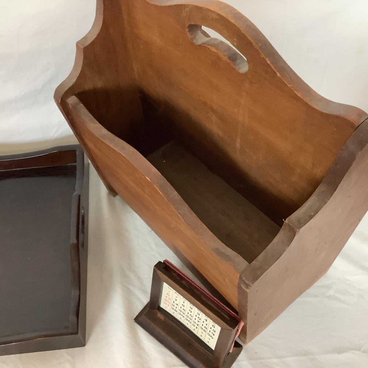 Lot. 6385. Wooden Tray, paperweight, Magazine holder, GS badges, Calendar