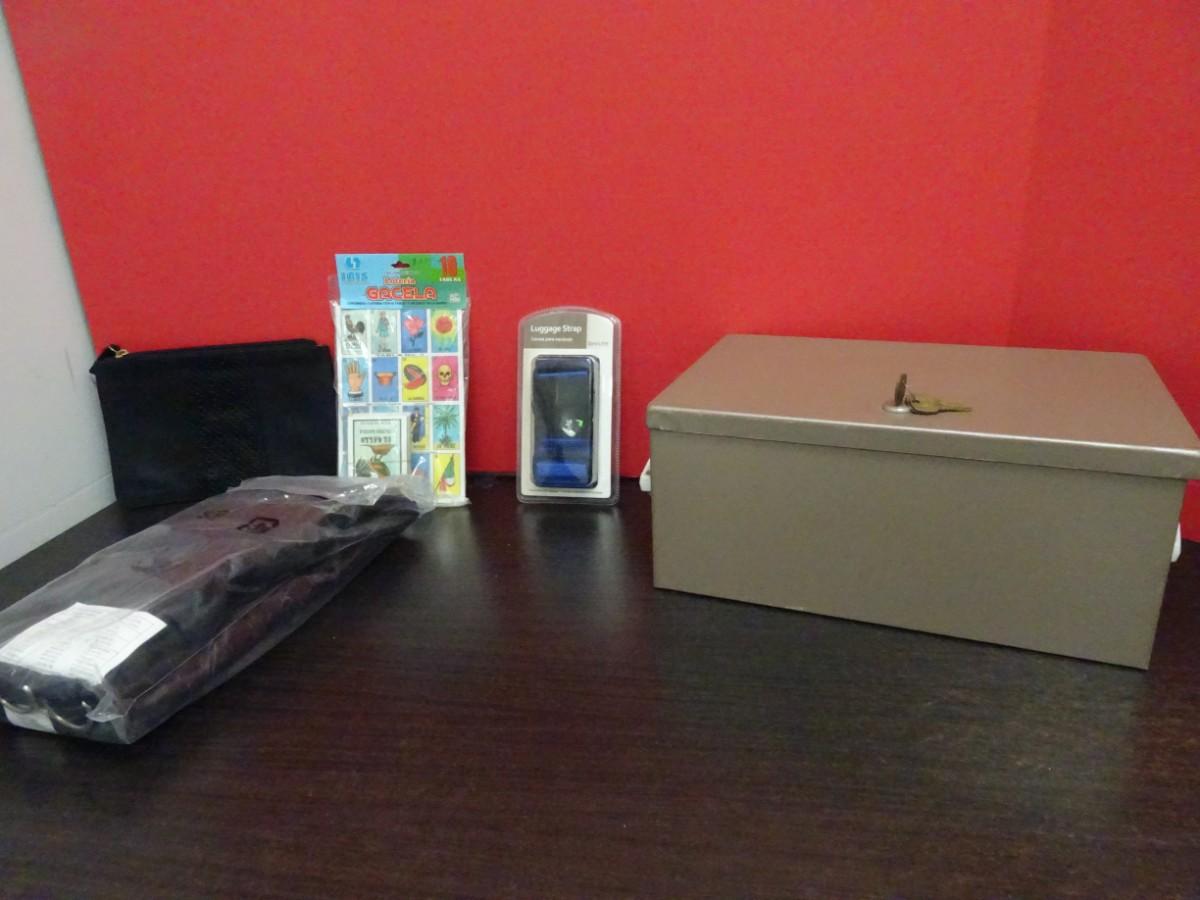 LOT 639. ANKLE WEIGHTS NEW IN PACKAGE, VINTAGE STORAGE BOX WITH KEY, MISC.
