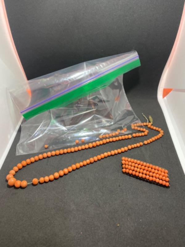 Lot of Antique Coral ? Jewelry Necklace is broken and needs repair and a small four row barrette