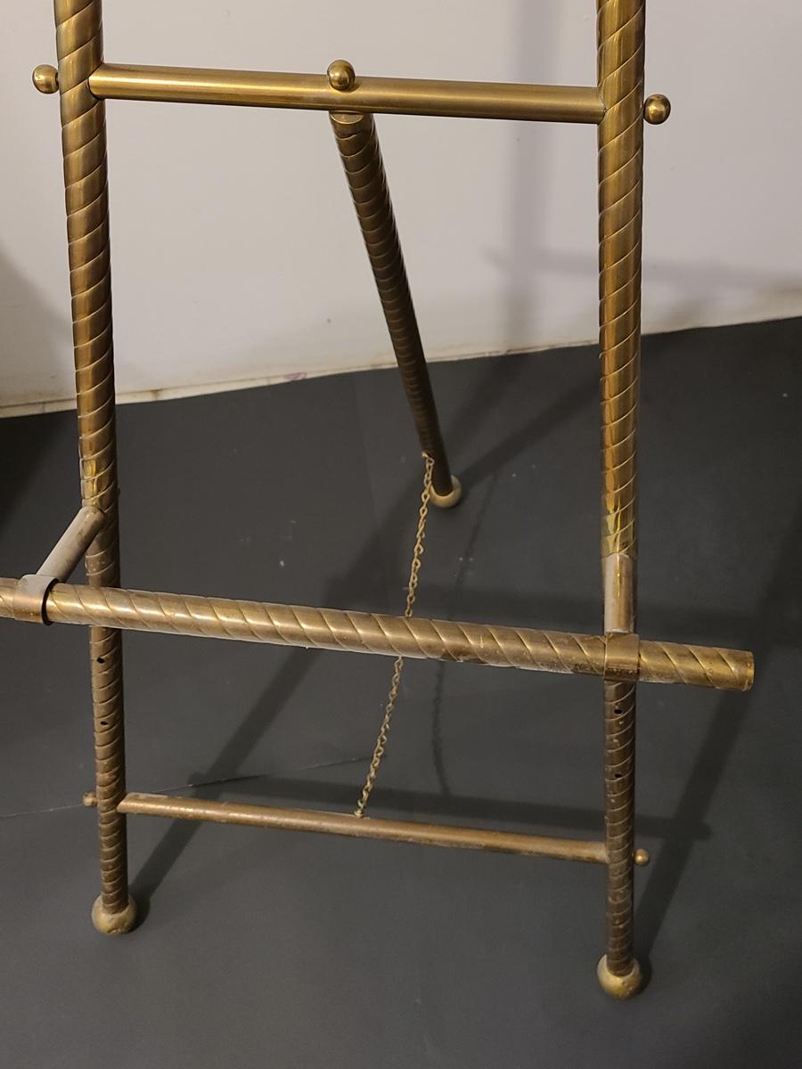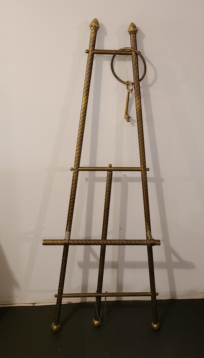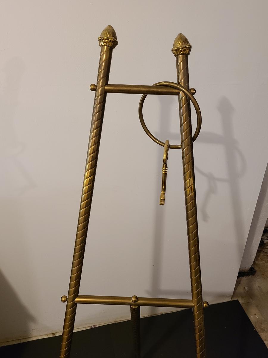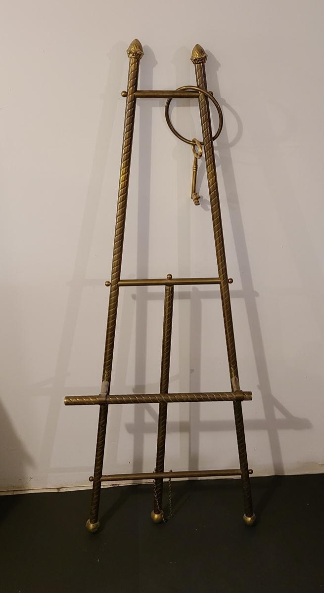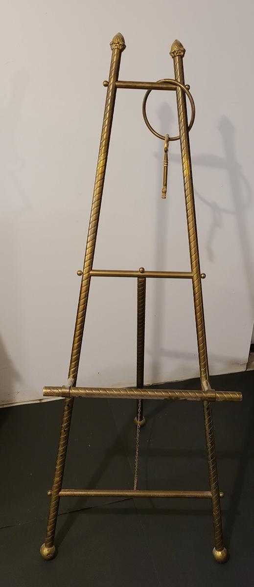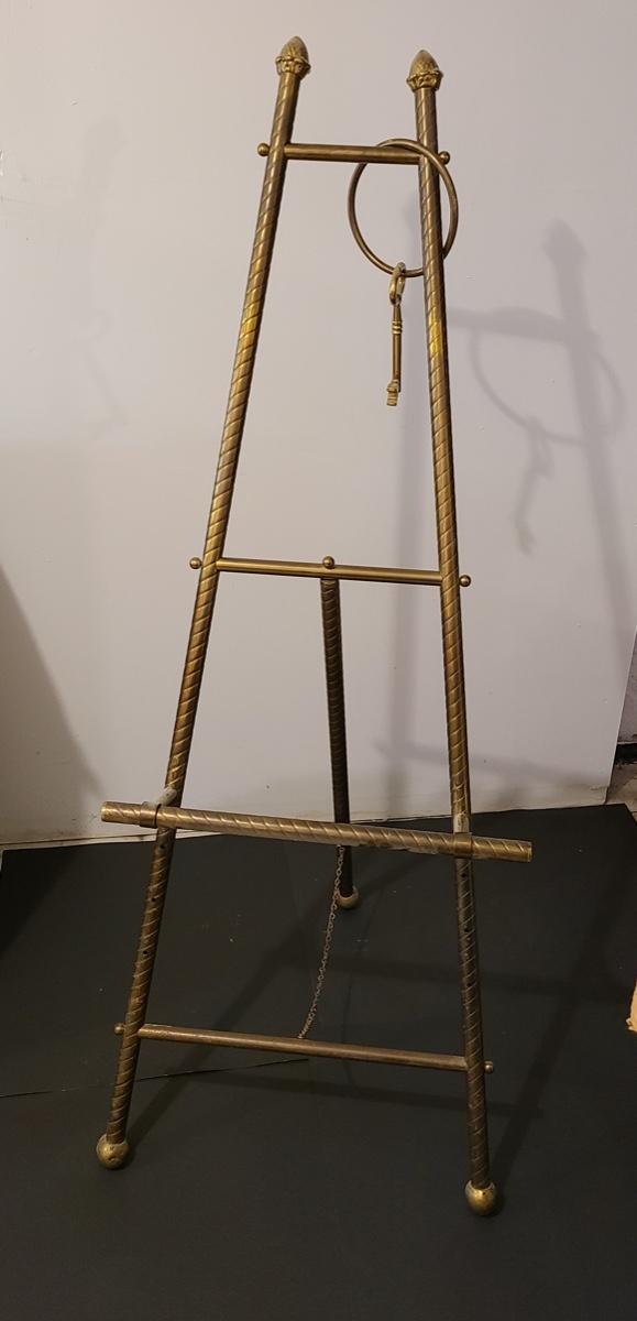 This vintage picture easel is so nice, it is sturdy, and looks to be lightweight hollow brass. Please see all pictures. The pictures show condition, measurements if taken, and what is included in the lot. Due to the large amount that we photograph and the time frame, we are not always able to take measurements. This is around maybe 4 1/2 to 5 feet tall. All items unless noted, are pre-owned and have been used. If you purchased furniture, you must bring help. We do not allow one person to carry large furniture out on their own. Bring help, tools and a truck for the safety of our client’s homes, and your personal safety. Company policy. Thank you