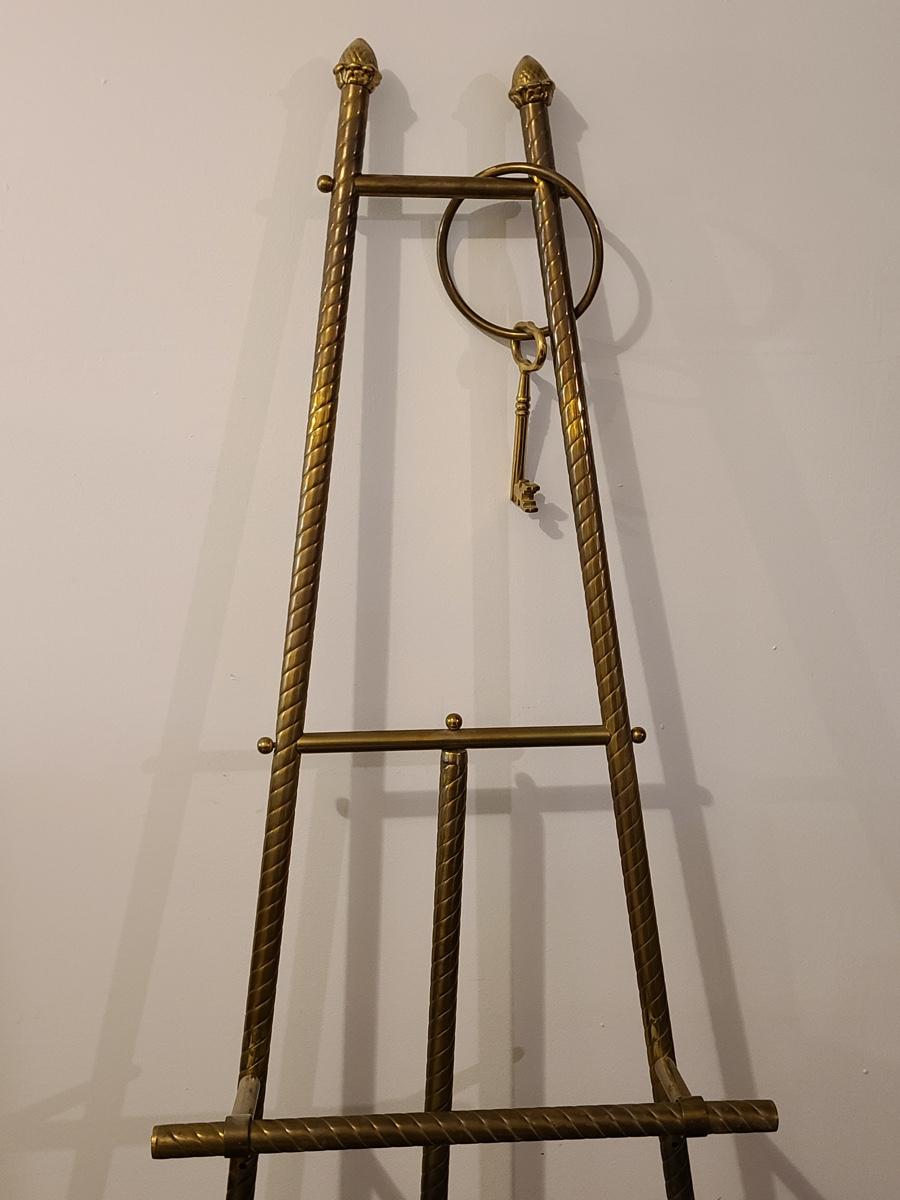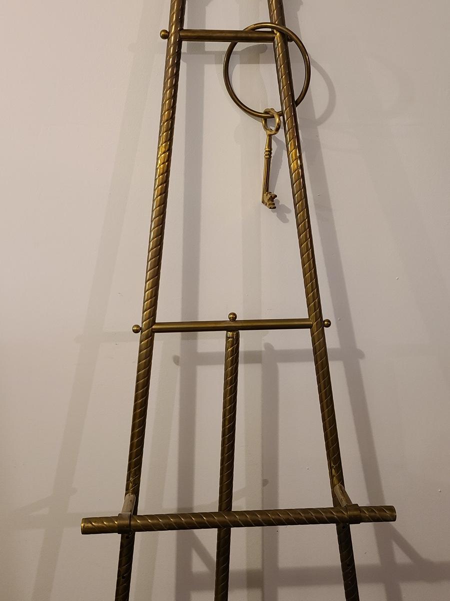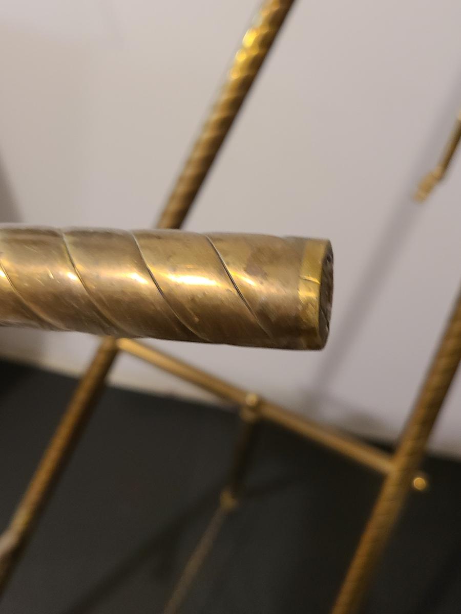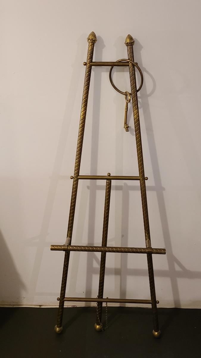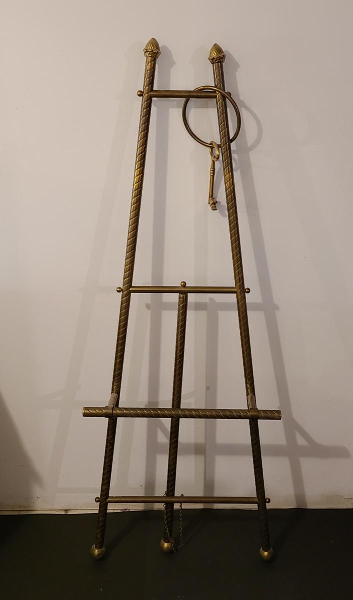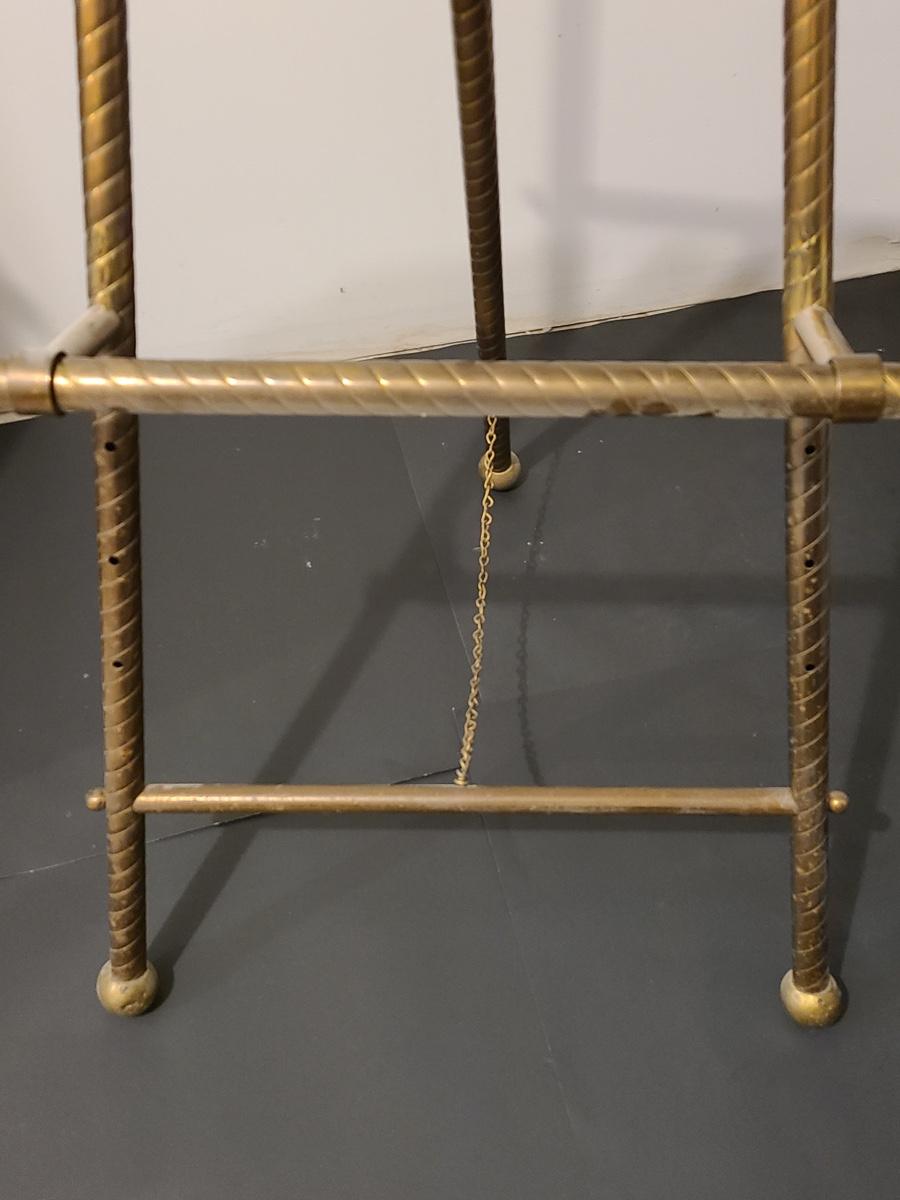 This vintage picture easel is so nice, it is sturdy, and looks to be lightweight hollow brass. Please see all pictures. The pictures show condition, measurements if taken, and what is included in the lot. Due to the large amount that we photograph and the time frame, we are not always able to take measurements. This is around maybe 4 1/2 to 5 feet tall. All items unless noted, are pre-owned and have been used. If you purchased furniture, you must bring help. We do not allow one person to carry large furniture out on their own. Bring help, tools and a truck for the safety of our client’s homes, and your personal safety. Company policy. Thank you