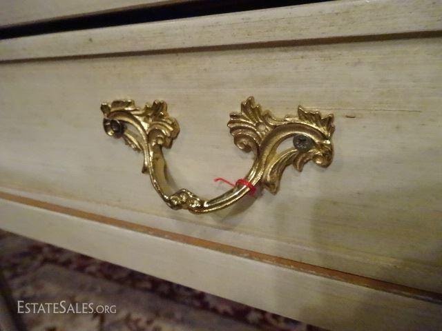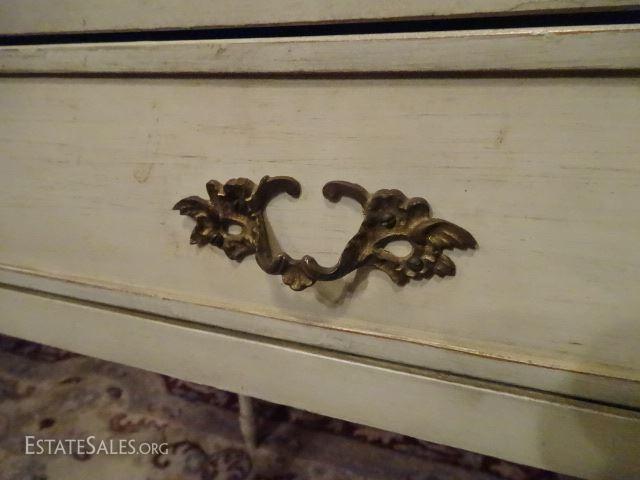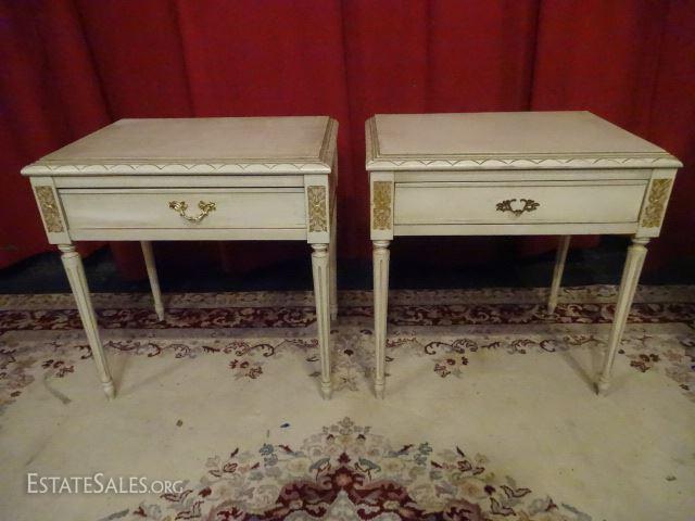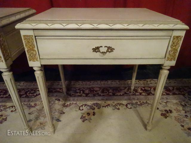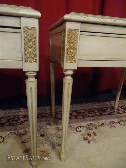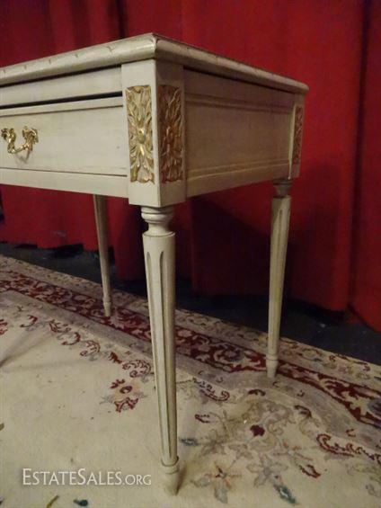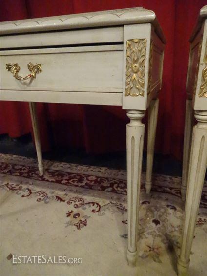 LOT 63A: PAIR VINTAGE LOUIS XVI STYLE TABLES, WHITE AND GOLD FINISH