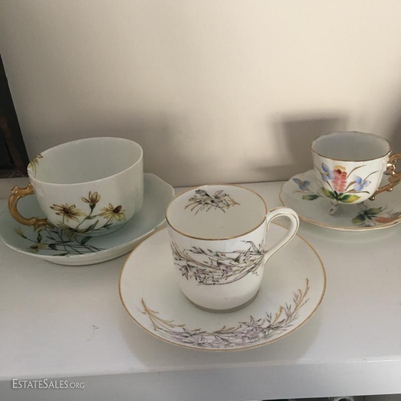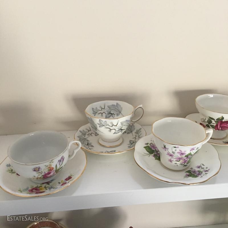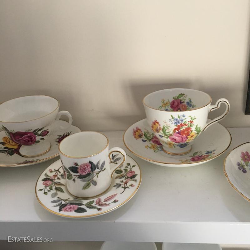 Makers include H&Co Depose, Queens Royal Bone China, Royal Taunton, Wedgwood, Numbered M. Redon for C.R. A Limoges, Royal Albert, Queen Anne