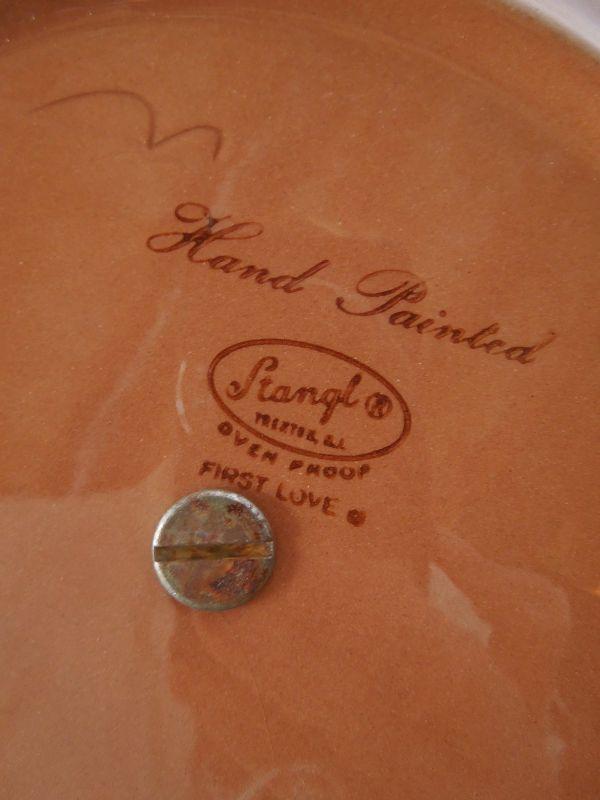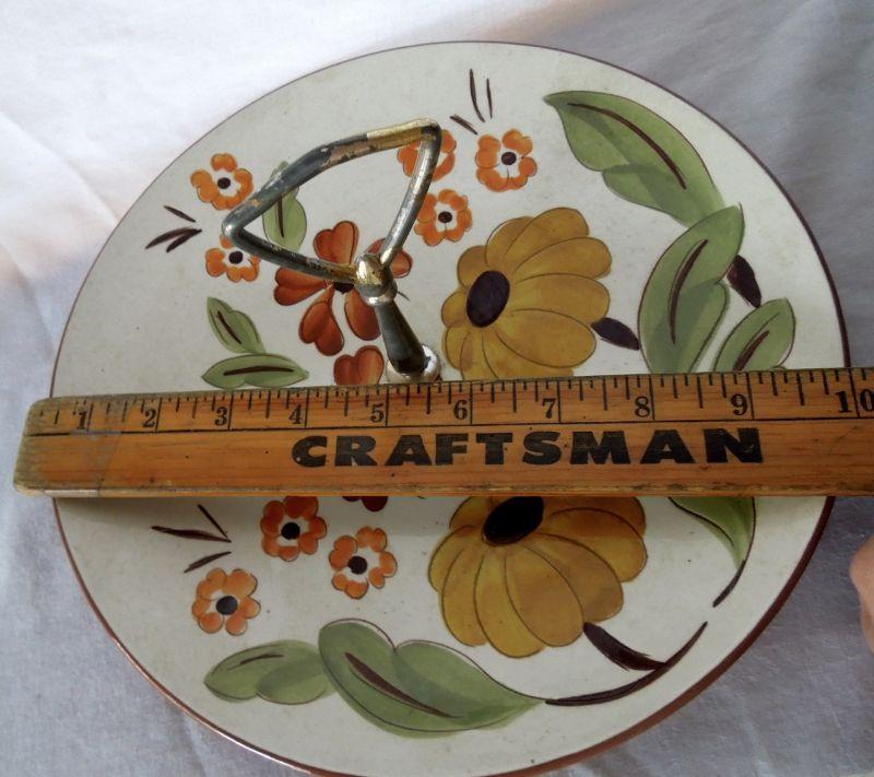 Stangle "First Love" pattern 1950's handled serving plate in autumn colors. Handle has some wear to metal.