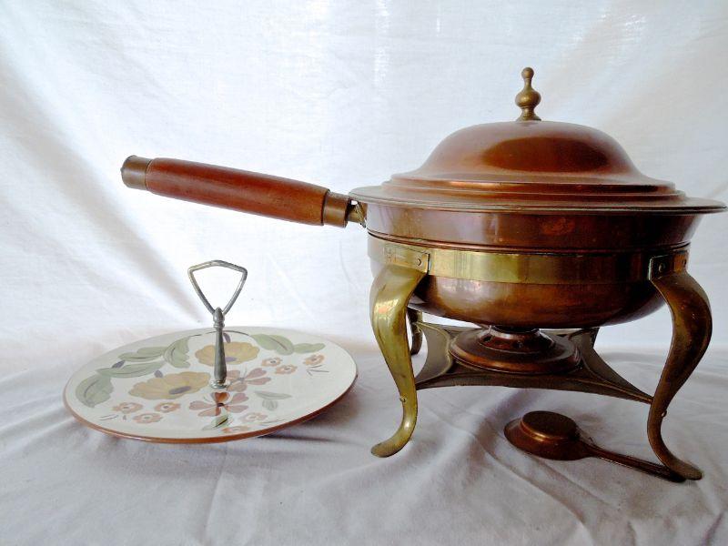 Lot 64: 1950's Copper Chaffing Dish and Stangl Serving Plate