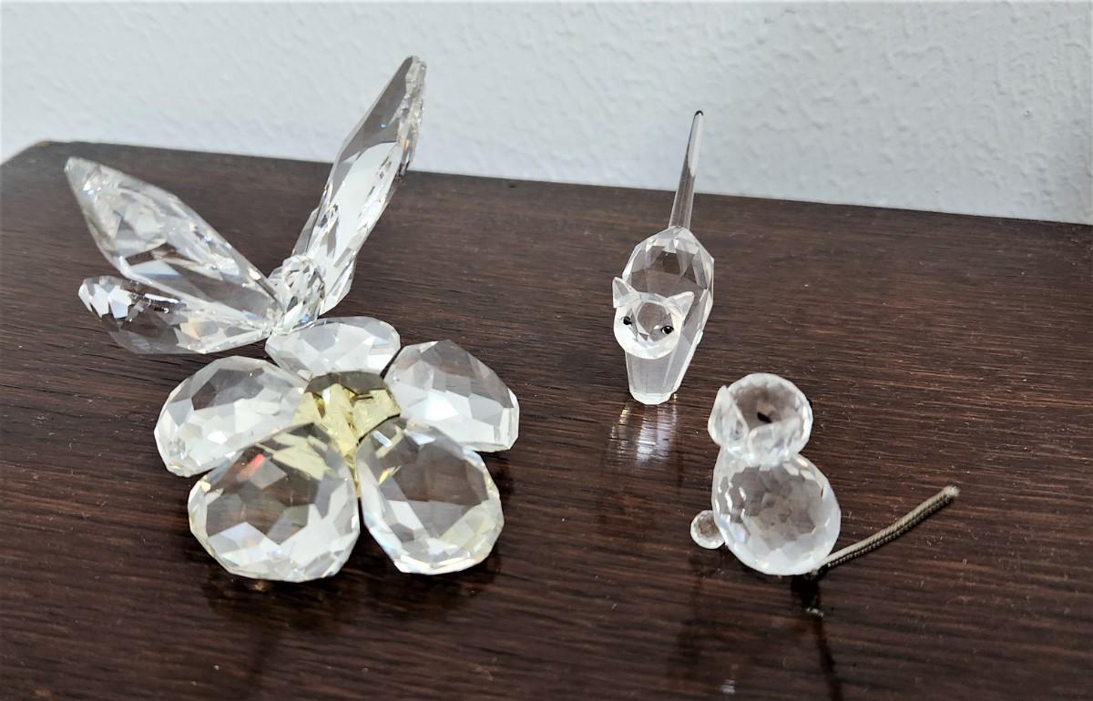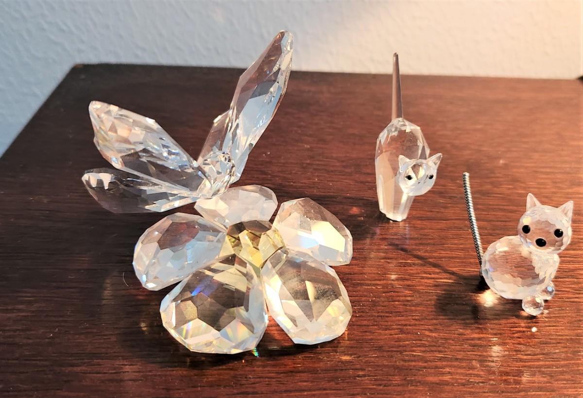 Lot #64  3 Piece Lot Swarovski Crystal - 2 cats, butterfly
